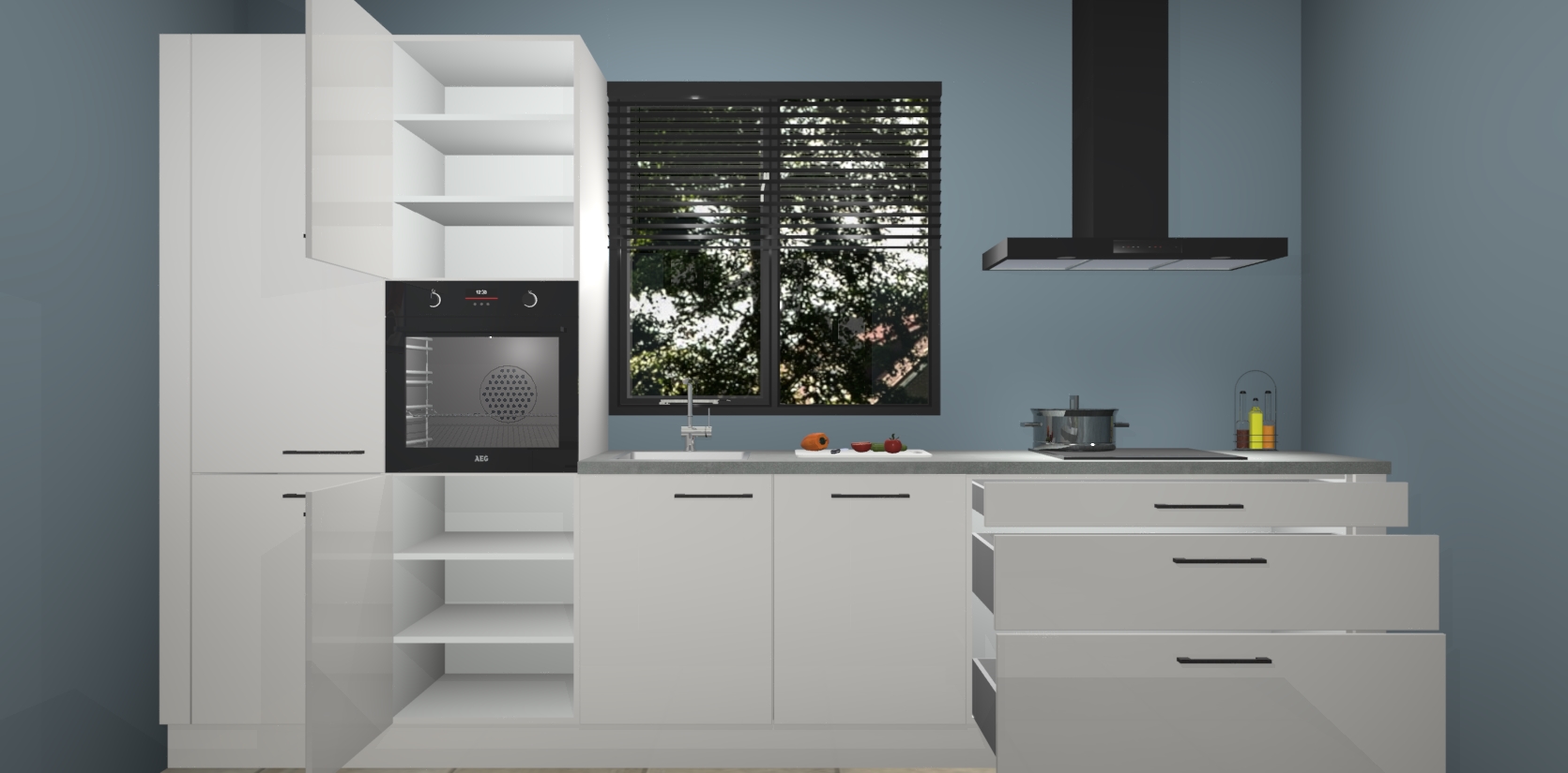 Inclusief plinten, stelpoten en werkblad