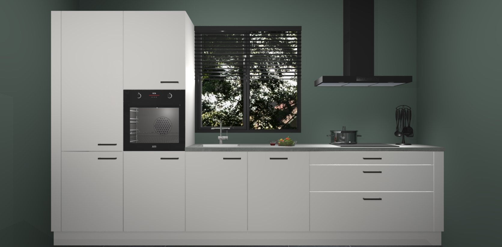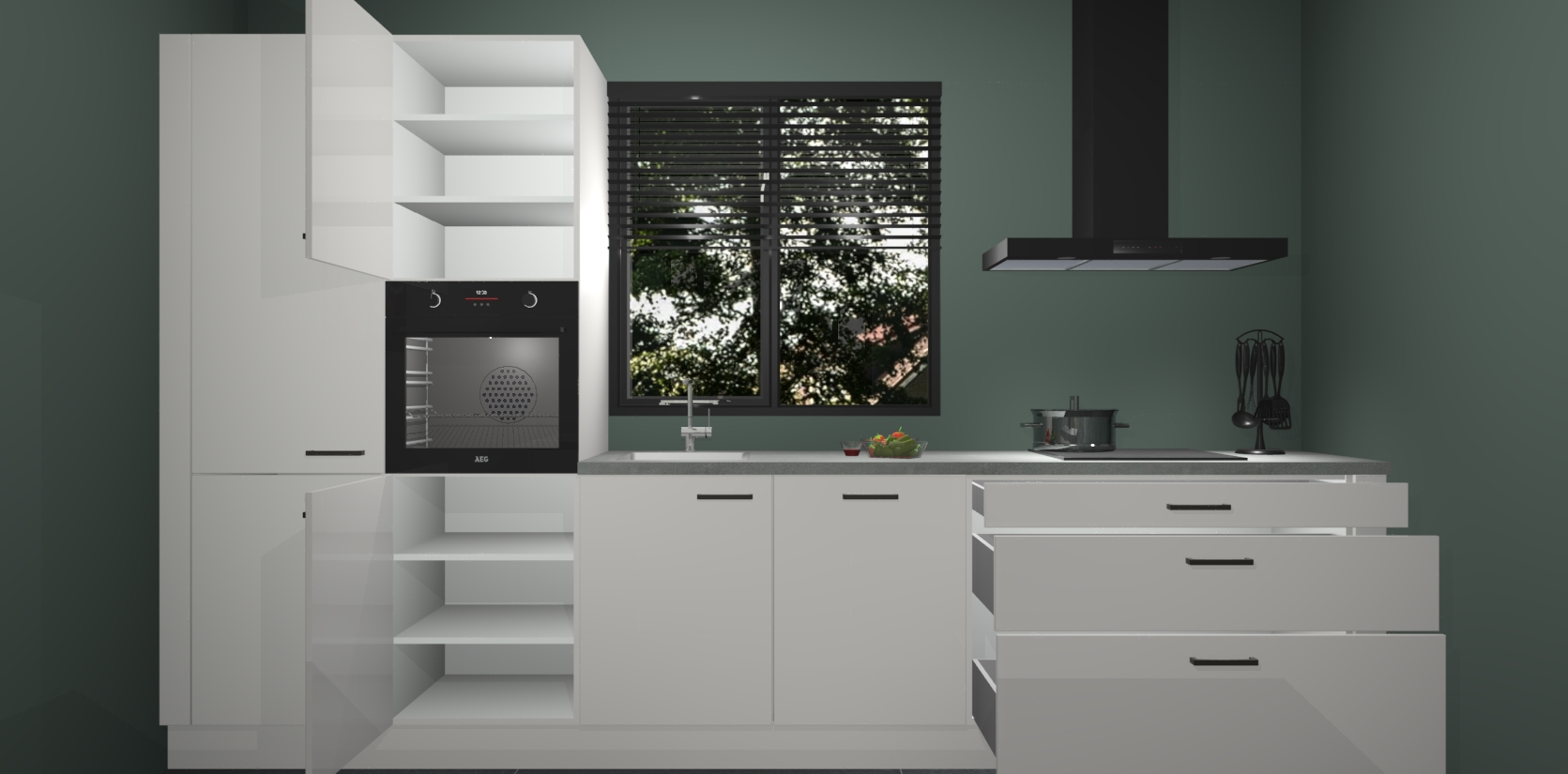 Maak kennis met de zijdegrijze hoogglans keuken Bonaire: de perfecte balans tussen tijdloos en modern. Met voldoende opbergruimte zal deze keuken de afgunst van uw vrienden en familie zijn, terwijl uw leven moeiteloos georganiseerd en rommelvrij blijft.