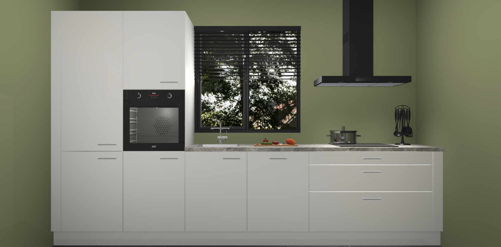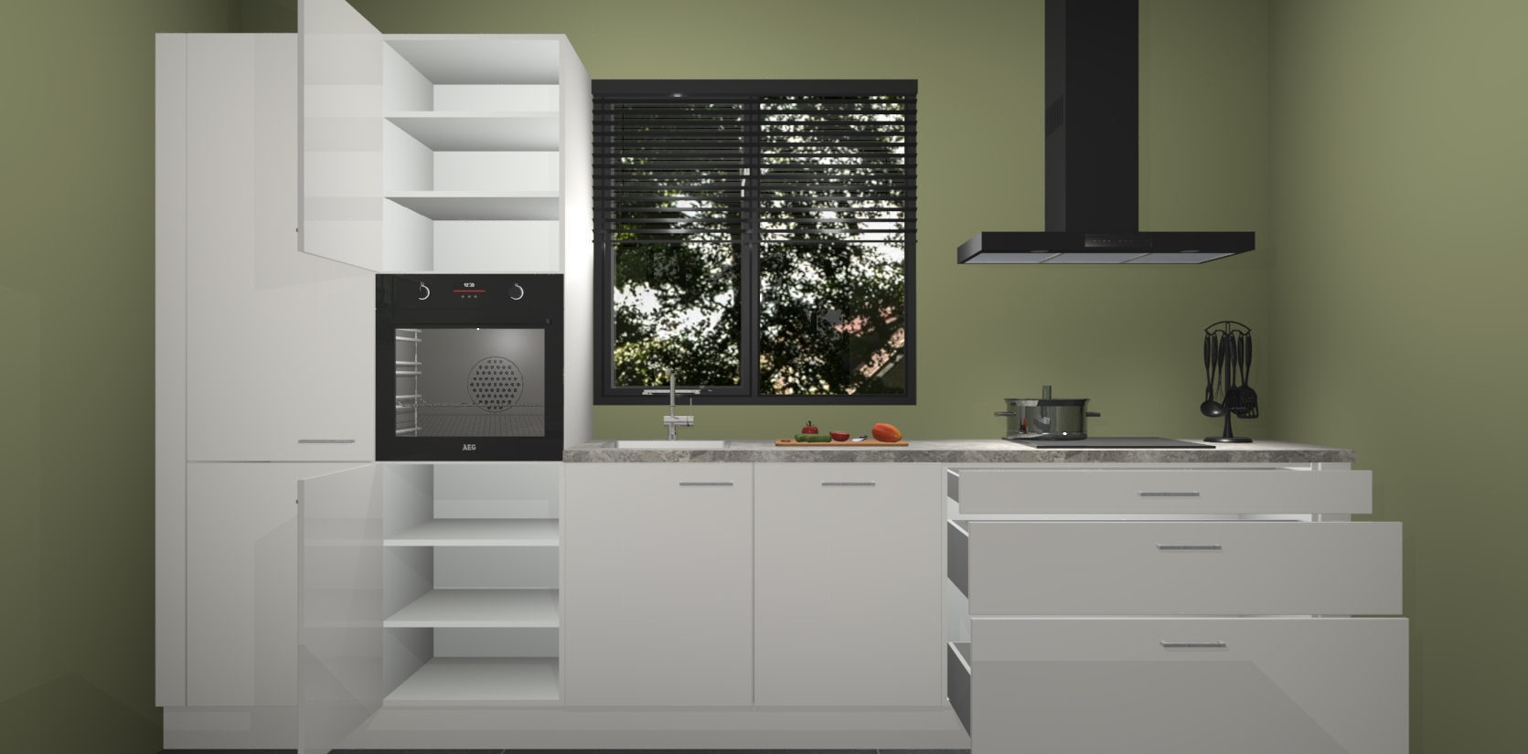 Maak kennis met de zijdegrijze hoogglans keuken Bonaire: de perfecte balans tussen tijdloos en modern. Met voldoende opbergruimte zal deze keuken de afgunst van uw vrienden en familie zijn, terwijl uw leven moeiteloos georganiseerd en rommelvrij blijft.