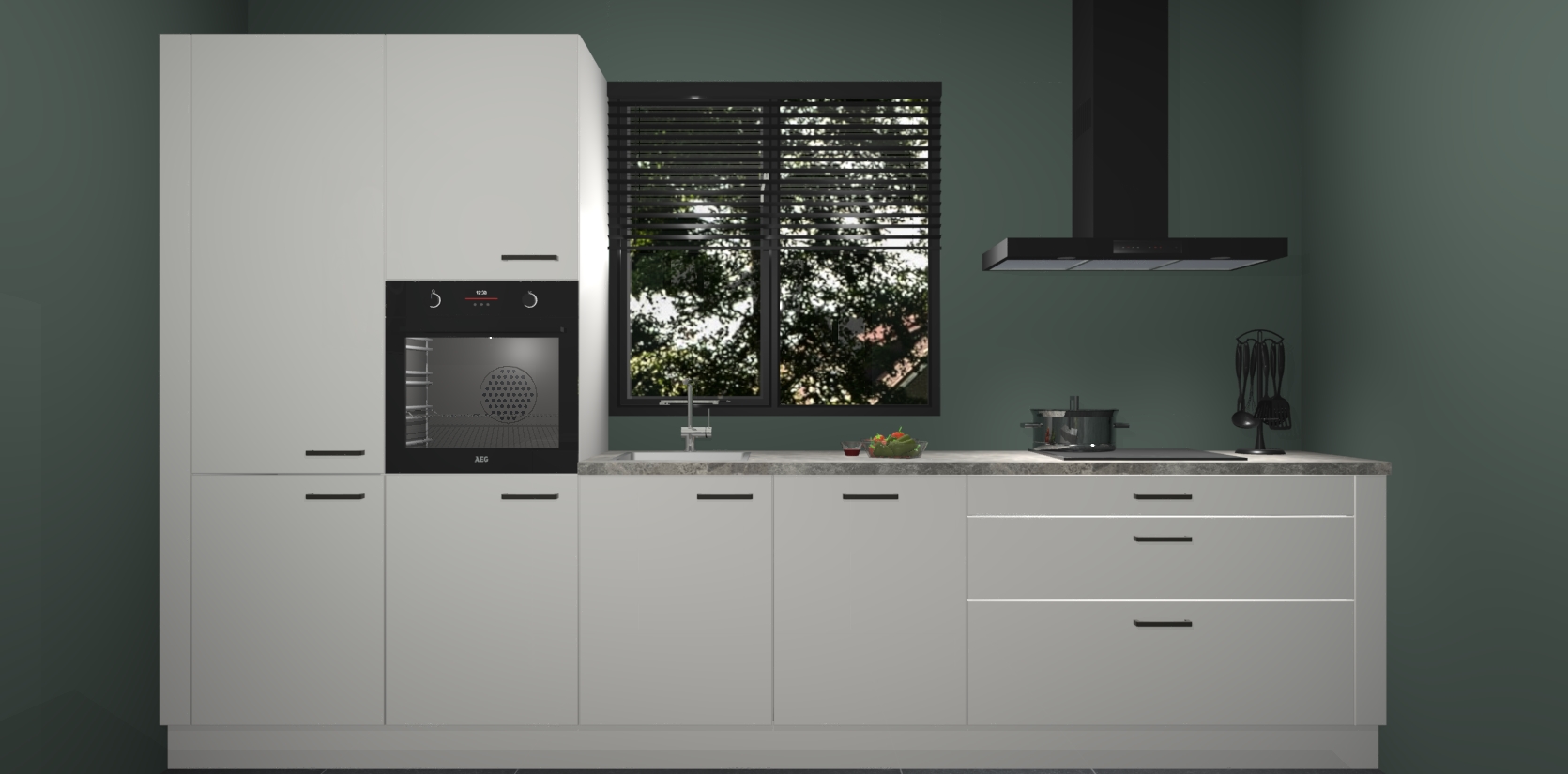 Maak kennis met de zijdegrijze hoogglans keuken Bonaire: de perfecte balans tussen tijdloos en modern. Met voldoende opbergruimte zal deze keuken de afgunst van uw vrienden en familie zijn, terwijl uw leven moeiteloos georganiseerd en rommelvrij blijft.