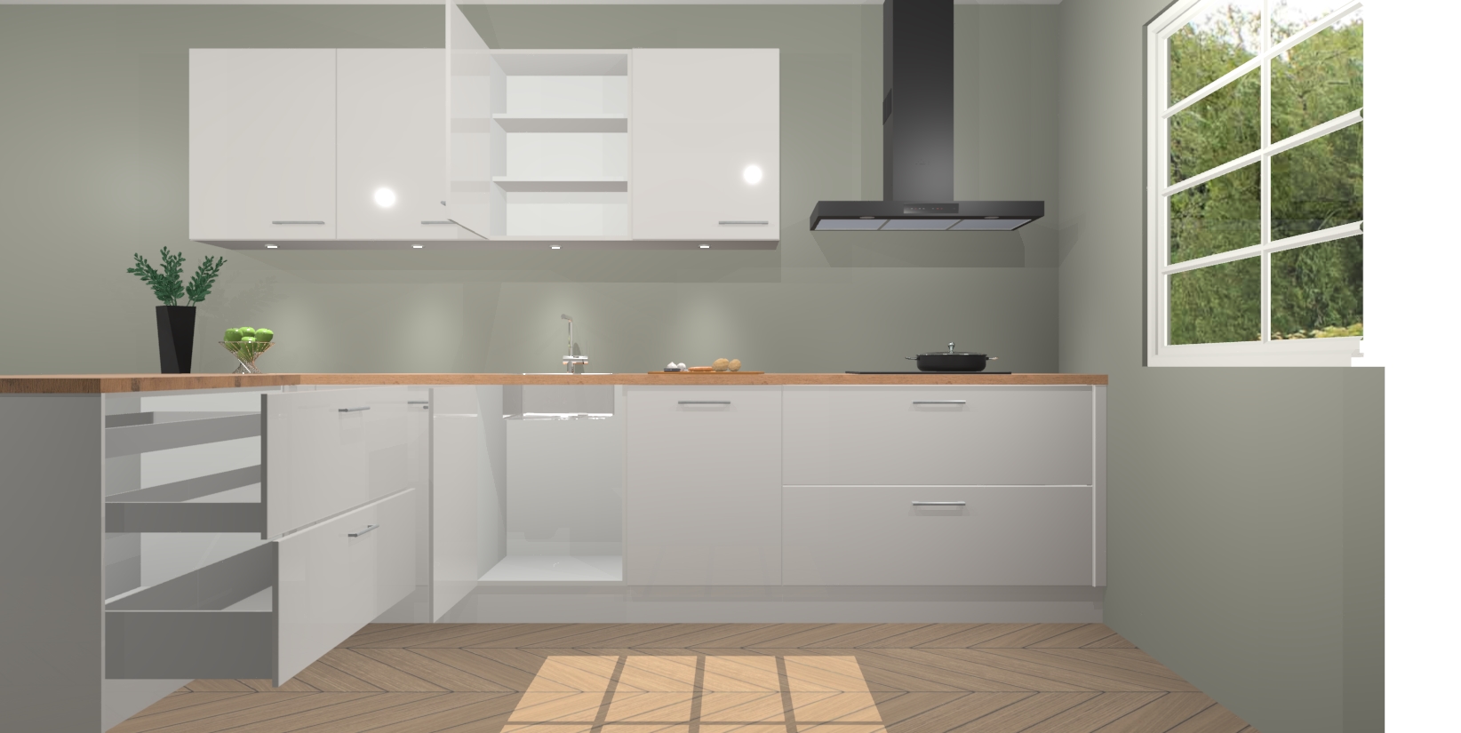 Inclusief plinten, stelpoten en werkblad