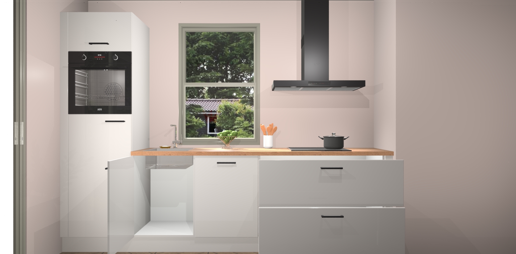 Inclusief plinten, stelpoten en werkblad