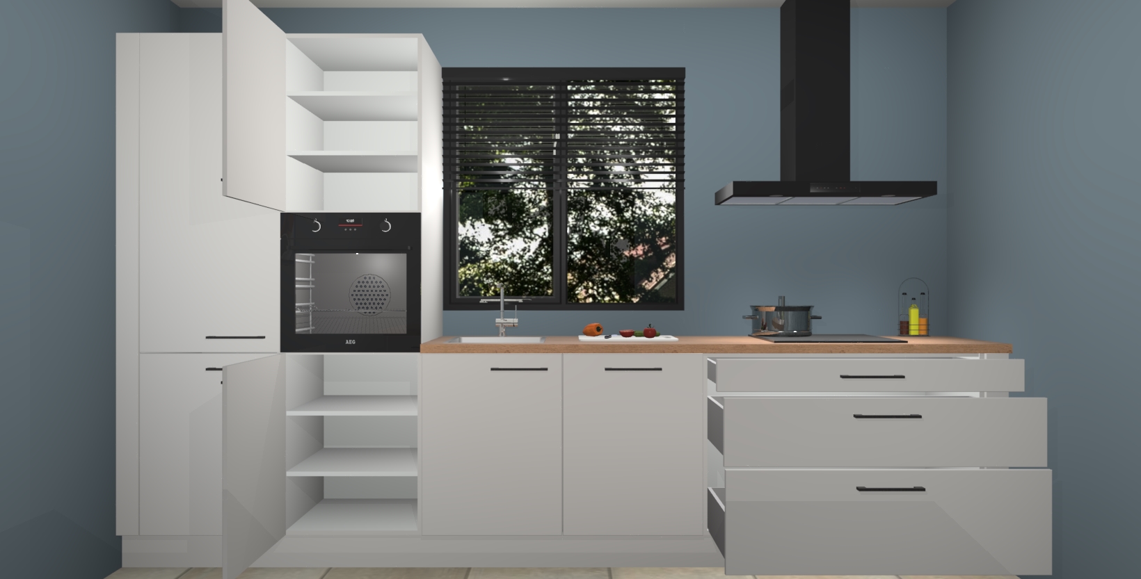 Inclusief plinten, stelpoten en werkblad