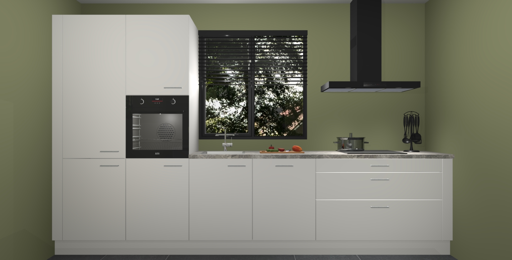 Maak kennis met de zijdegrijze keuken Bonaire: de perfecte balans tussen tijdloos en modern. Met voldoende opbergruimte zal deze keuken de afgunst van uw vrienden en familie zijn, terwijl uw leven moeiteloos georganiseerd en rommelvrij blijft.