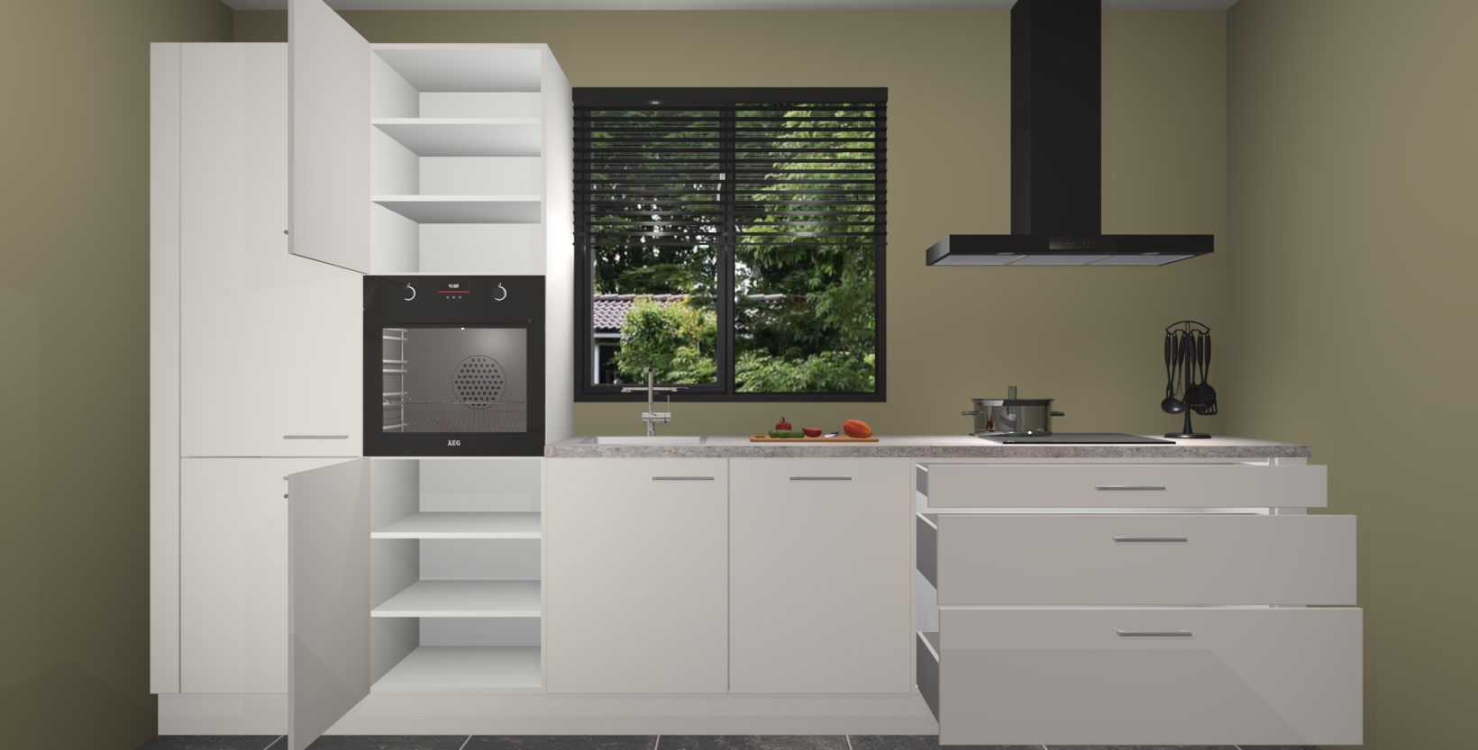 Maak kennis met de zijdegrijze keuken Bonaire: de perfecte balans tussen tijdloos en modern. Met voldoende opbergruimte zal deze keuken de afgunst van uw vrienden en familie zijn, terwijl uw leven moeiteloos georganiseerd en rommelvrij blijft.