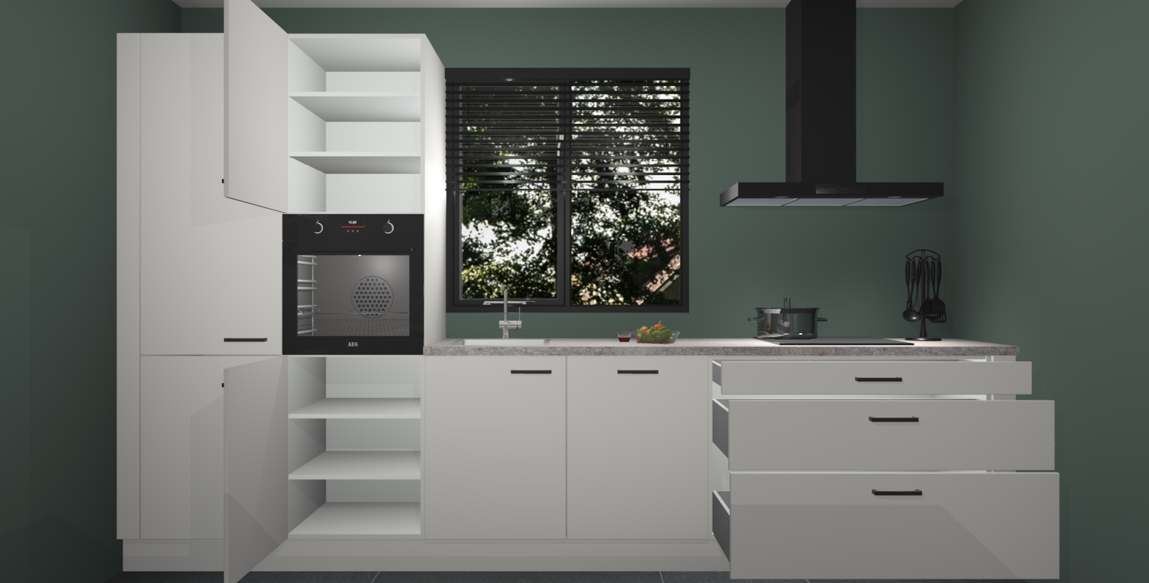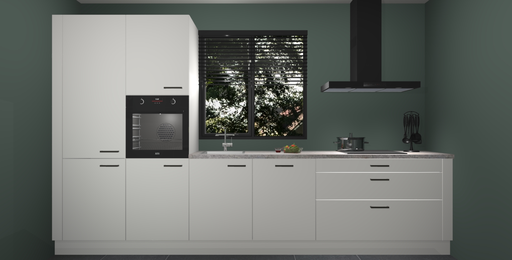 Maak kennis met de zijdegrijze keuken Bonaire: de perfecte balans tussen tijdloos en modern. Met voldoende opbergruimte zal deze keuken de afgunst van uw vrienden en familie zijn, terwijl uw leven moeiteloos georganiseerd en rommelvrij blijft.