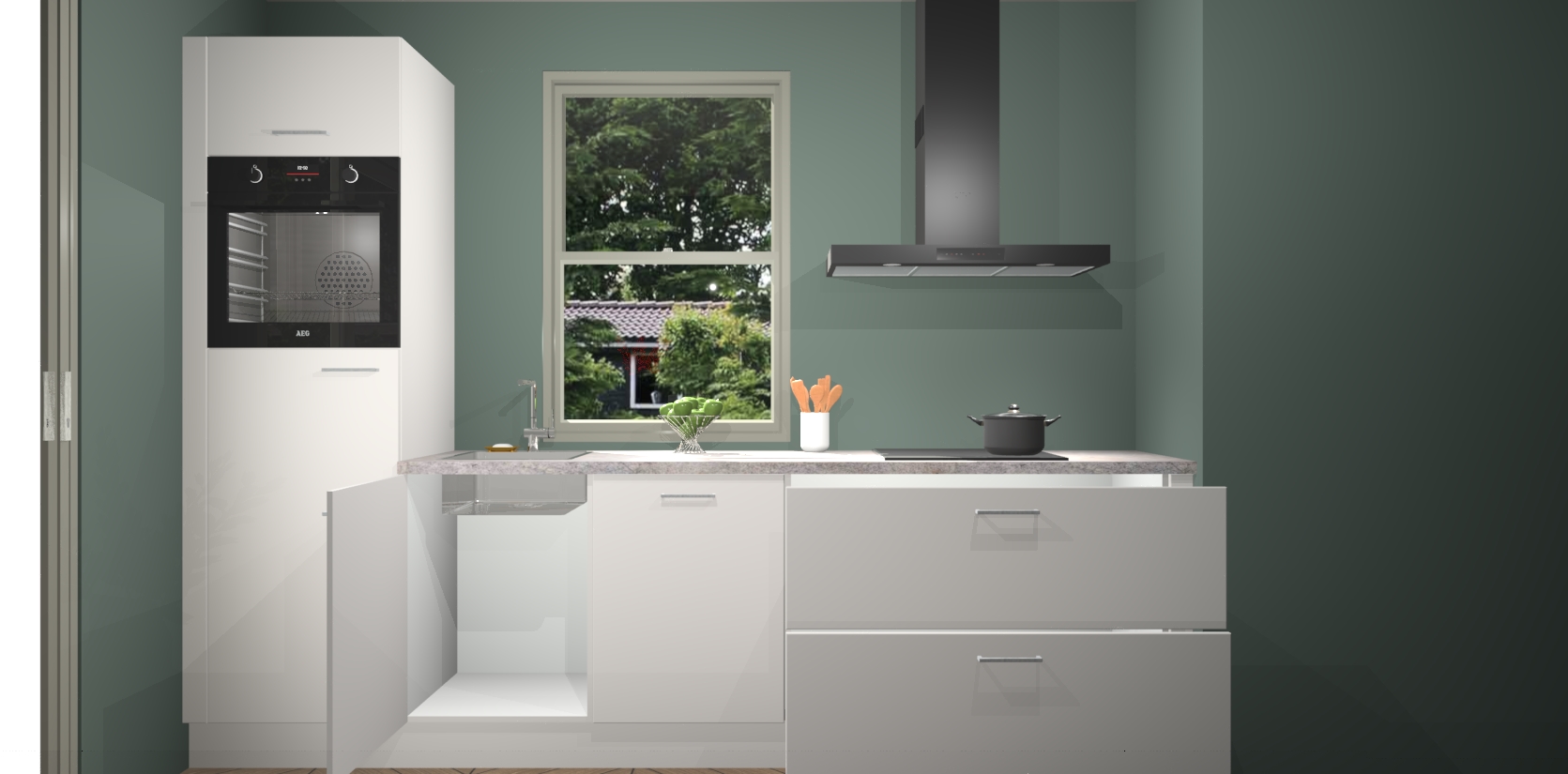 Inclusief plinten, stelpoten en werkblad