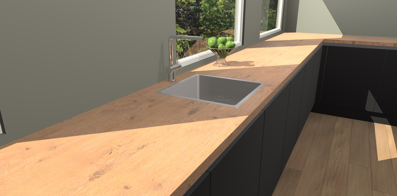 • Bij een hoekwerkblad zijn de hoeken in gevreesd en op maat gemaakt