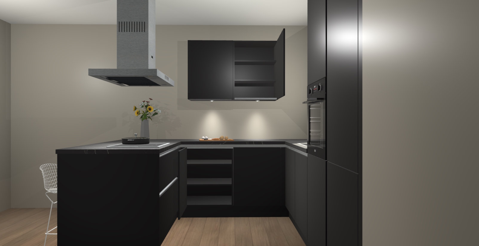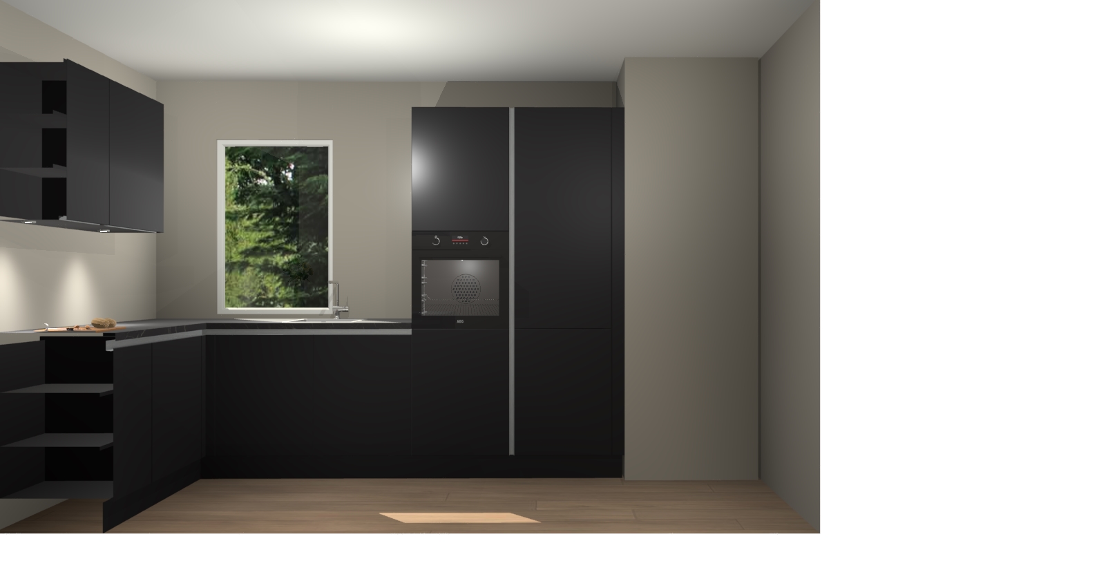 De perfecte toevoeging aan uw droomkeuken! De Zwarte greeploze keuken Kalisz is een opmerkelijke en verfijnde keuken. Hij is ontworpen met moderne lijnen en tijdloze schoonheid die garant staan voor een luxe uitstraling. Deze uiterst functionele en mooie keuken heeft een reeks verbazingwekkende functies: de overvloedige opbergruimte bevat soft close deuren, terwijl vijf inbouwapparaten zijn inbegrepen in de vaste lage prijs. Beter nog, uw Zwarte greeploze  keuken Kalisz bestellen duurt slechts 7 weken met levering van voorgemonteerde kasten.
