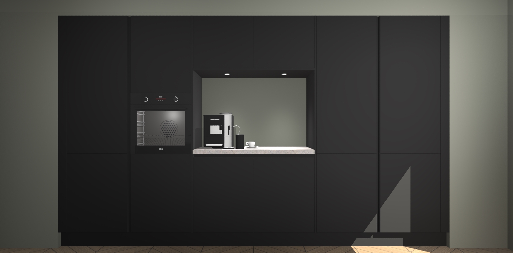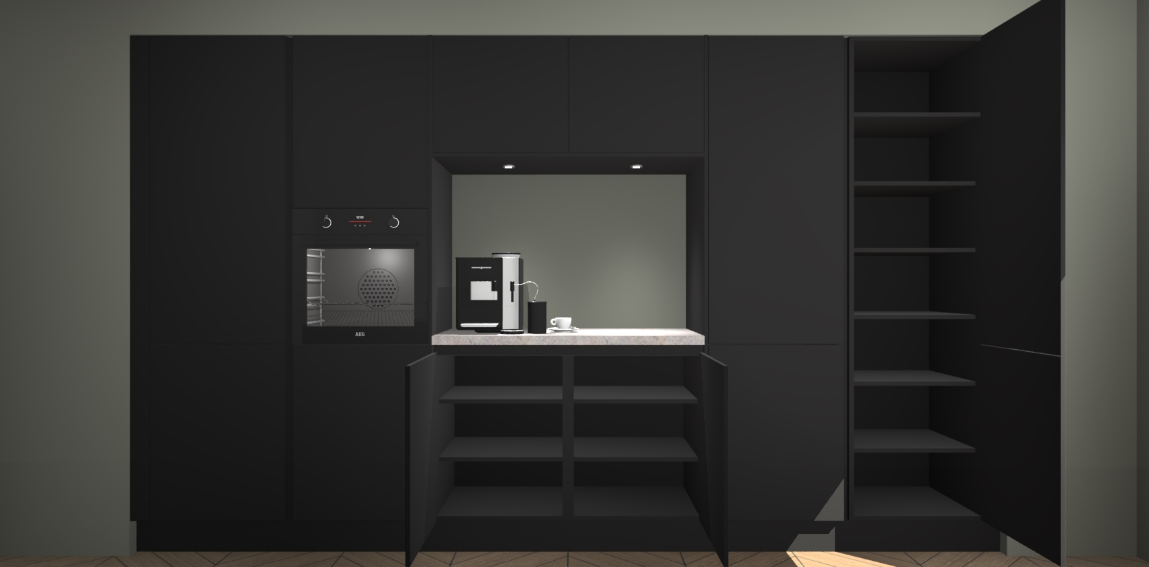 De Zwarte greeploze keuken Lodz wordt geleverd met een set van 5 ingebouwde apparaten: Een oven, inductiekookplaat, afzuigkap, vaatwasser en koelkast. Deze kunnen gemakkelijk worden opgewaardeerd naar AEG. Met de gegarandeerde lage prijs en de snelle levering van 7 weken kan u er op rekenen dat de Zwarte greeploze keuken Lodz zo snel mogelijk uw huis bereikt!