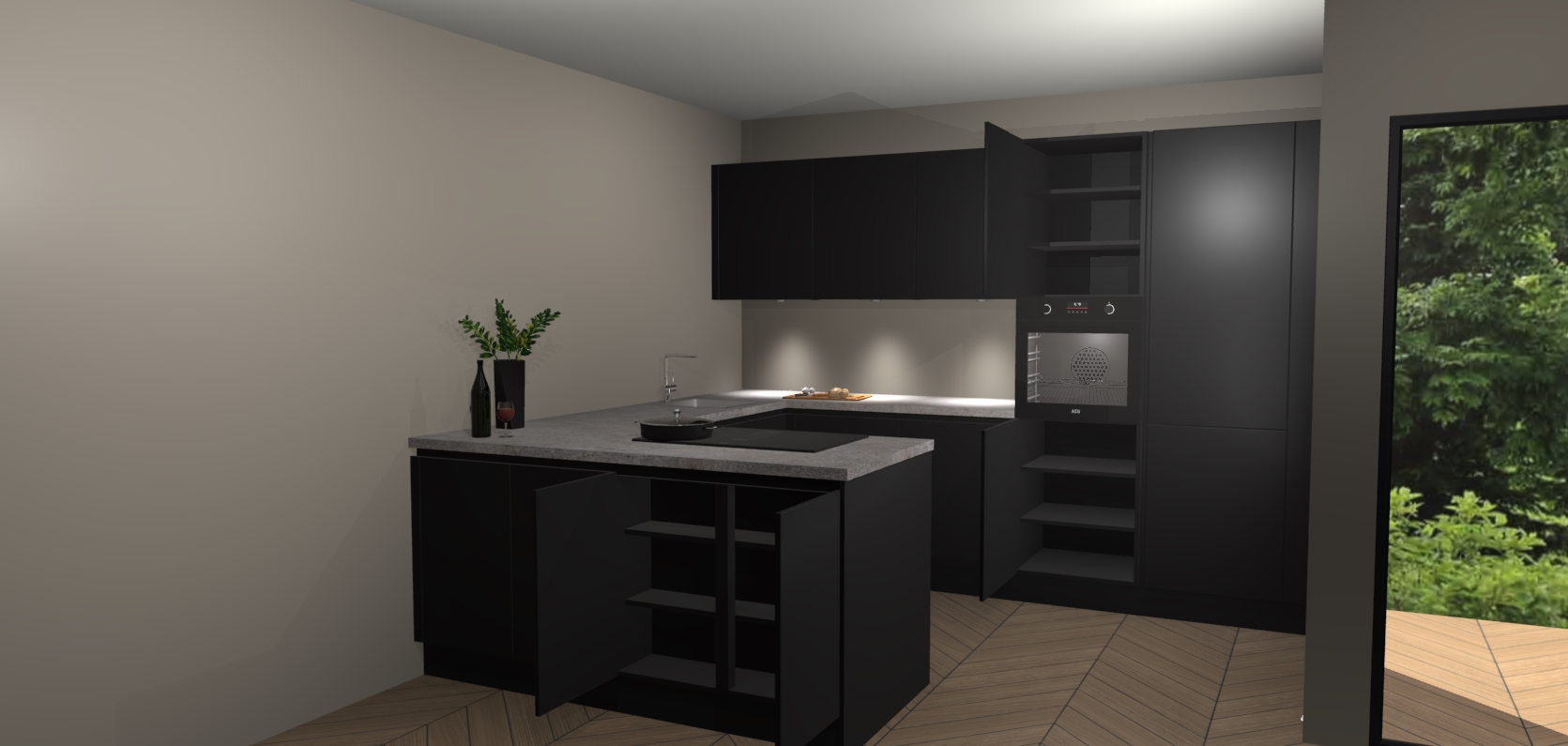 De perfecte toevoeging aan uw droomkeuken! De zwarte greeploze keuken Rosario is een opmerkelijke en verfijnde keuken. Hij is ontworpen met moderne lijnen en tijdloze schoonheid die garant staan voor een luxe uitstraling. Deze uiterst functionele en mooie keuken heeft een reeks verbazingwekkende functies: de overvloedige opbergruimte bevat soft close deuren, terwijl vijf inbouwapparaten zijn inbegrepen in de vaste lage prijs. Beter nog, uw zwarte greeploze keuken Rosario bestellen duurt slechts 7 weken met levering van voorgemonteerde kasten.
