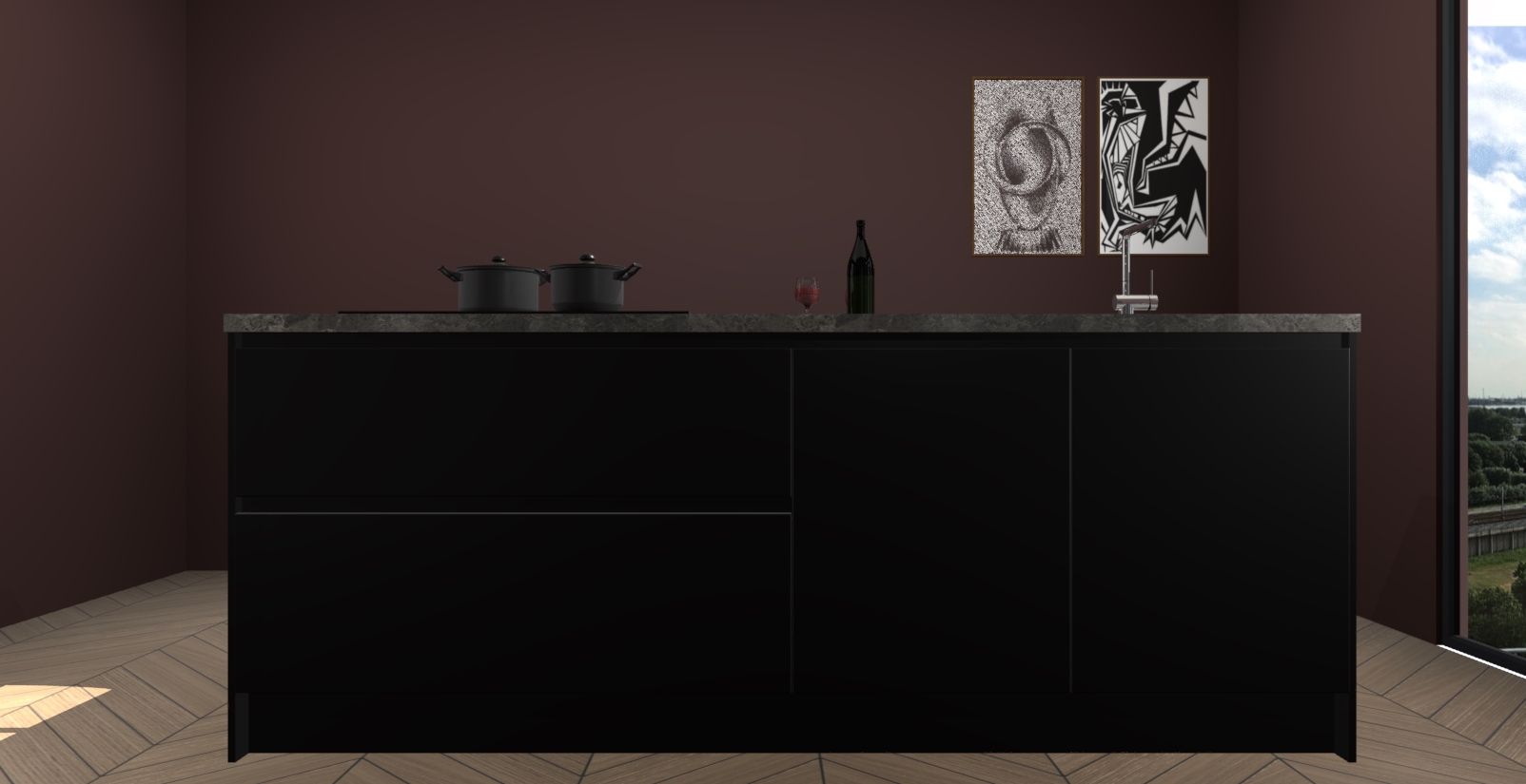 Breng luxe in uw keuken met de zwarte Rusiec Keuken! Dit prachtige kookeiland straalt elegantie uit en laat elke ruimte er modern en verfijnd uitzien. De strakke zwarte kleur geeft uw keuken een gevoel van sfeer en verfijning dat u bij andere stijlen niet krijgt.