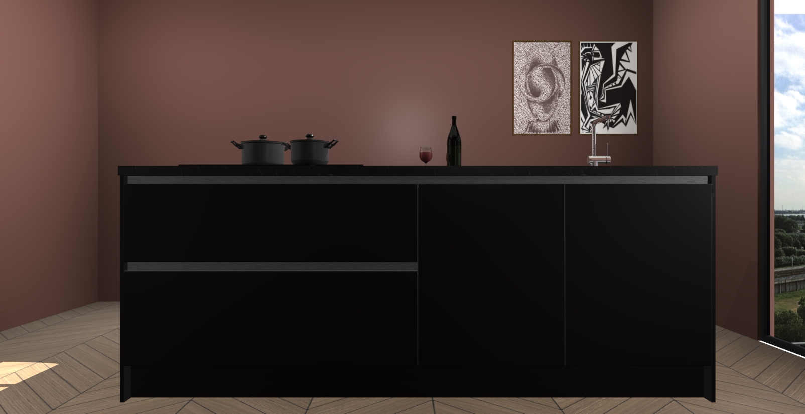Breng luxe in uw keuken met de zwarte Rusiec  Keuken! Dit prachtige kookeiland straalt elegantie uit en laat elke ruimte er modern en verfijnd uitzien. De strakke zwarte kleur geeft uw keuken een gevoel van sfeer en verfijning dat u bij andere stijlen niet krijgt.