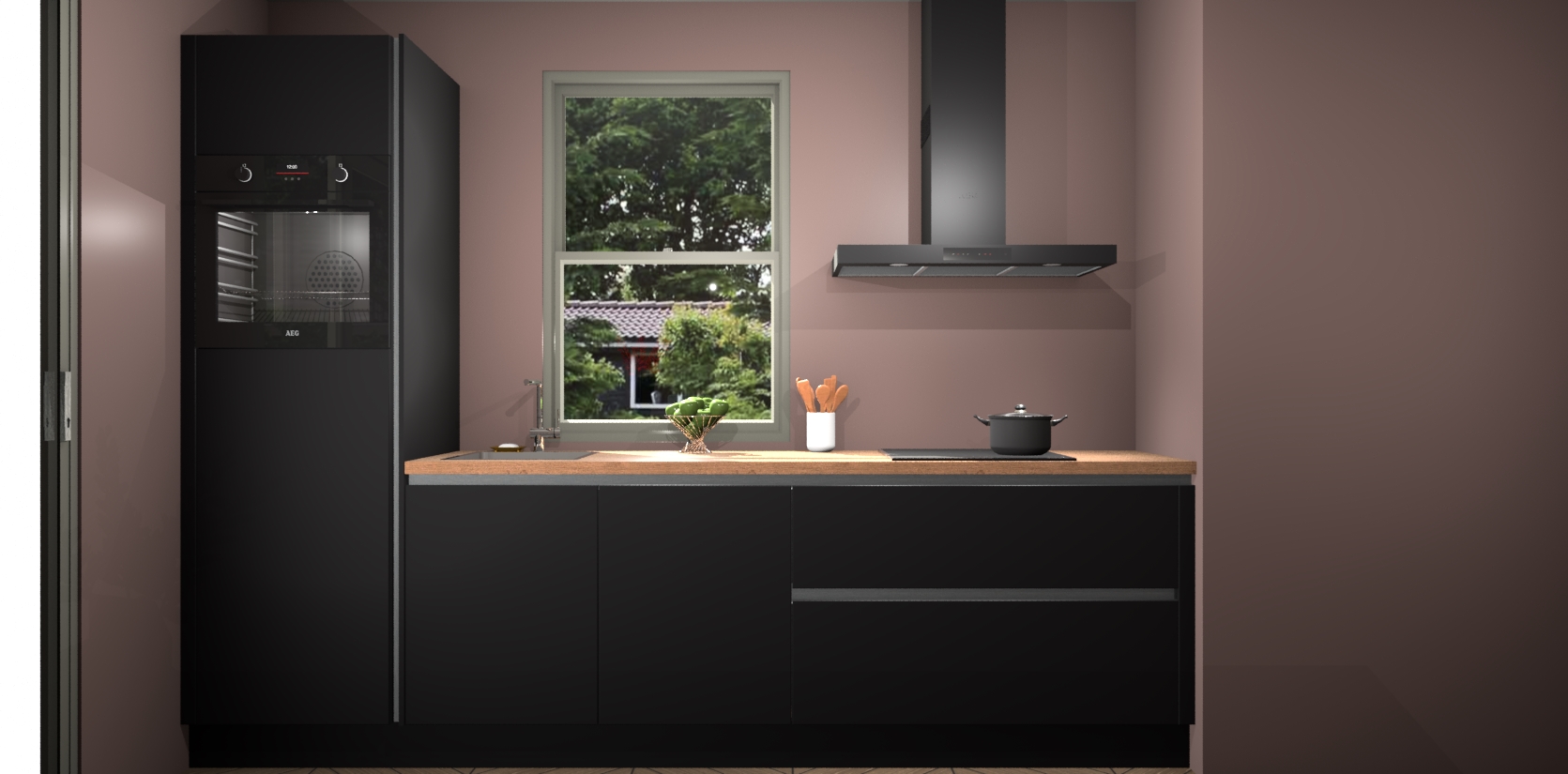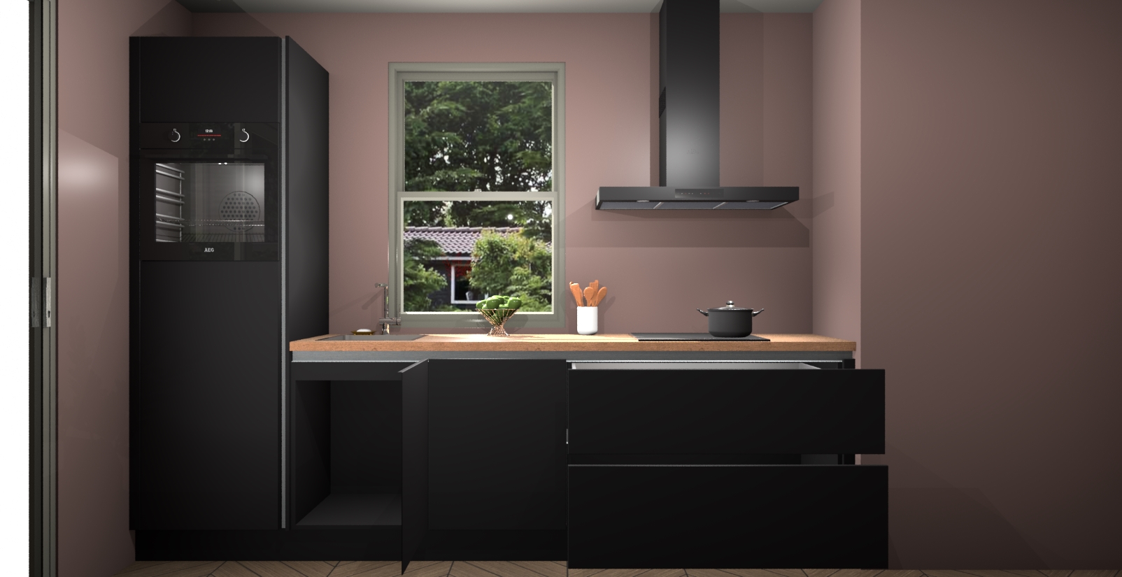 Een stijlvolle en praktische keuken als deze mag gezien worden. Dankzij de prachtige Zwarte afwerking wordt de keuken gemakkelijk het middelpunt van uw huis - hij ziet er geweldig uit onder allerlei lichtomstandigheden, van dag tot nacht!