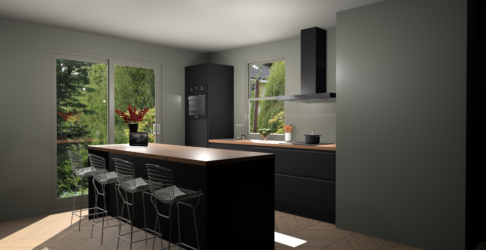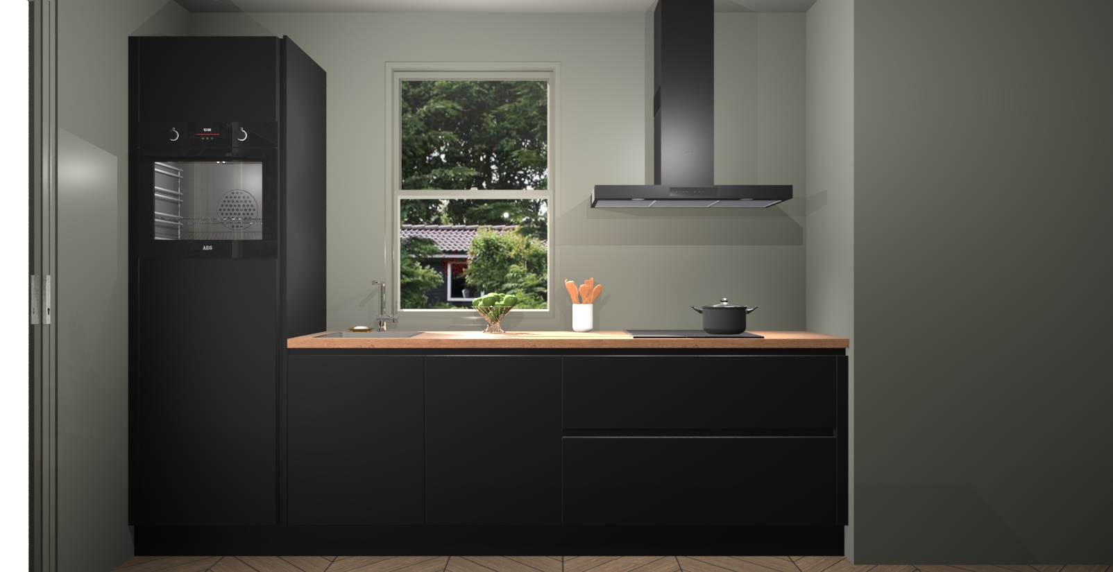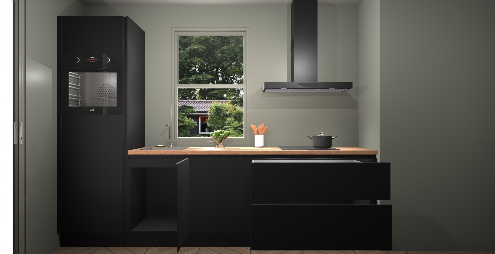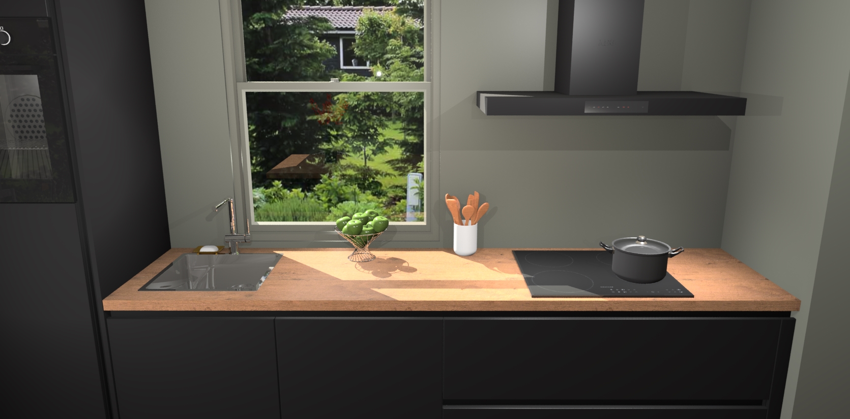 Een stijlvolle en praktische keuken als deze mag gezien worden. Dankzij de prachtige Zwarte afwerking wordt de keuken gemakkelijk het middelpunt van uw huis - hij ziet er geweldig uit onder allerlei lichtomstandigheden, van dag tot nacht!