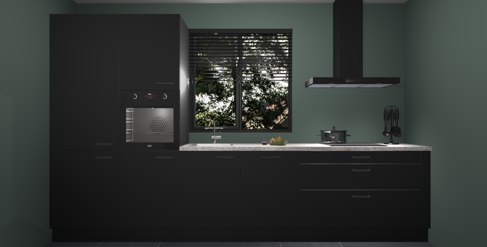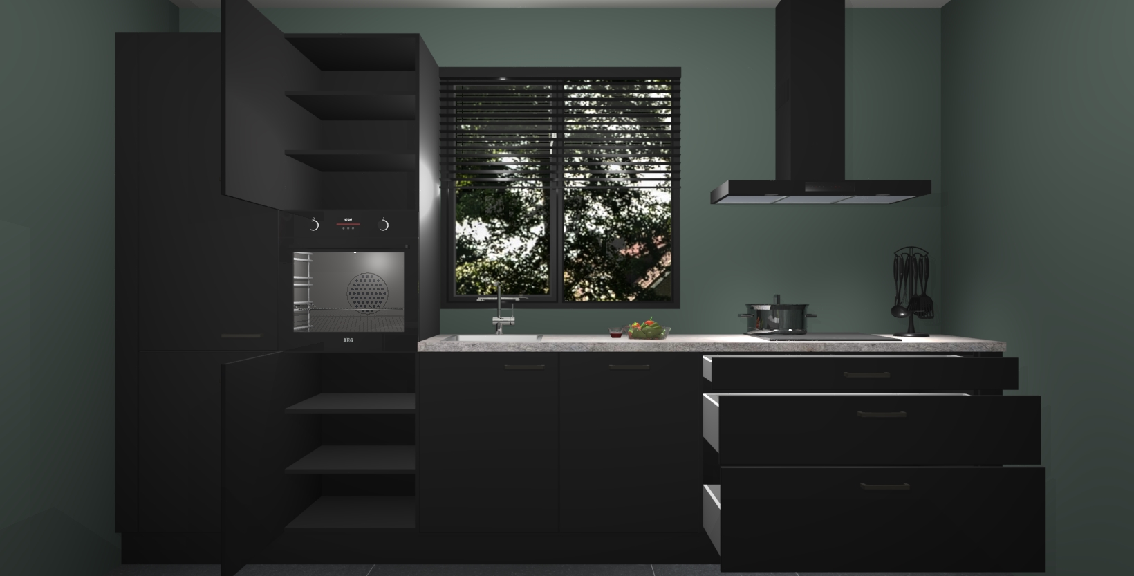 Maak kennis met de zwarte keuken Bonaire: de perfecte balans tussen tijdloos en modern. Met voldoende opbergruimte zal deze keuken de afgunst van uw vrienden en familie zijn, terwijl uw leven moeiteloos georganiseerd en rommelvrij blijft.