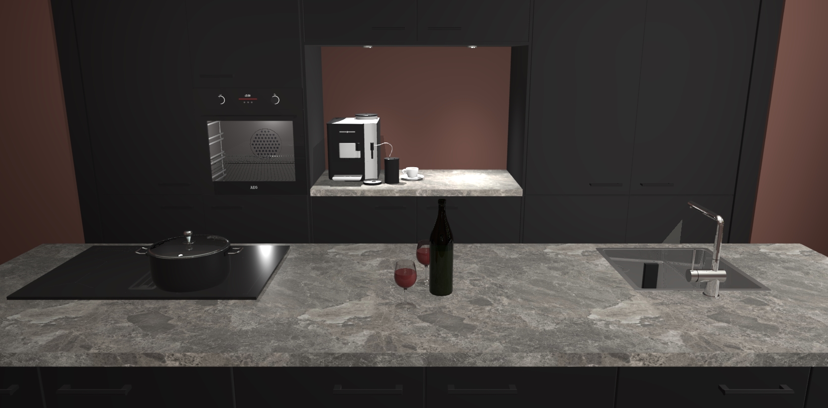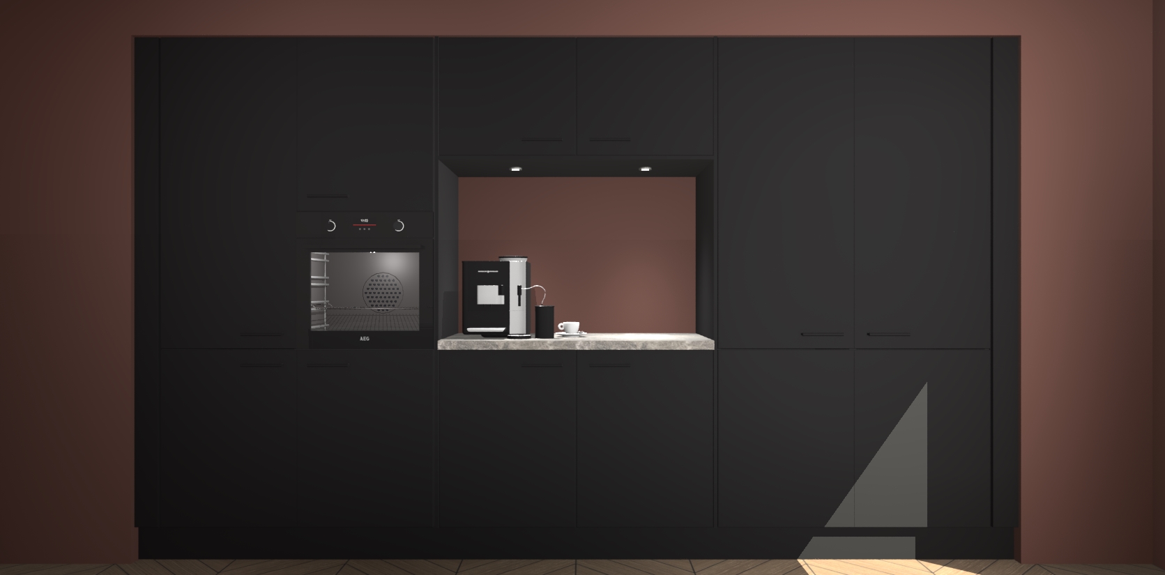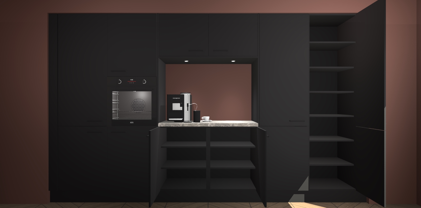 De Zwarte keuken Lodz wordt geleverd met een set van 5 ingebouwde apparaten: Een oven, inductiekookplaat, afzuigkap, vaatwasser en koelkast. Deze kunnen gemakkelijk worden opgewaardeerd naar AEG. Met de gegarandeerde lage prijs en de snelle levering van 7 weken kan u er op rekenen dat de Zwarte keuken Lodz zo snel mogelijk uw huis bereikt!
