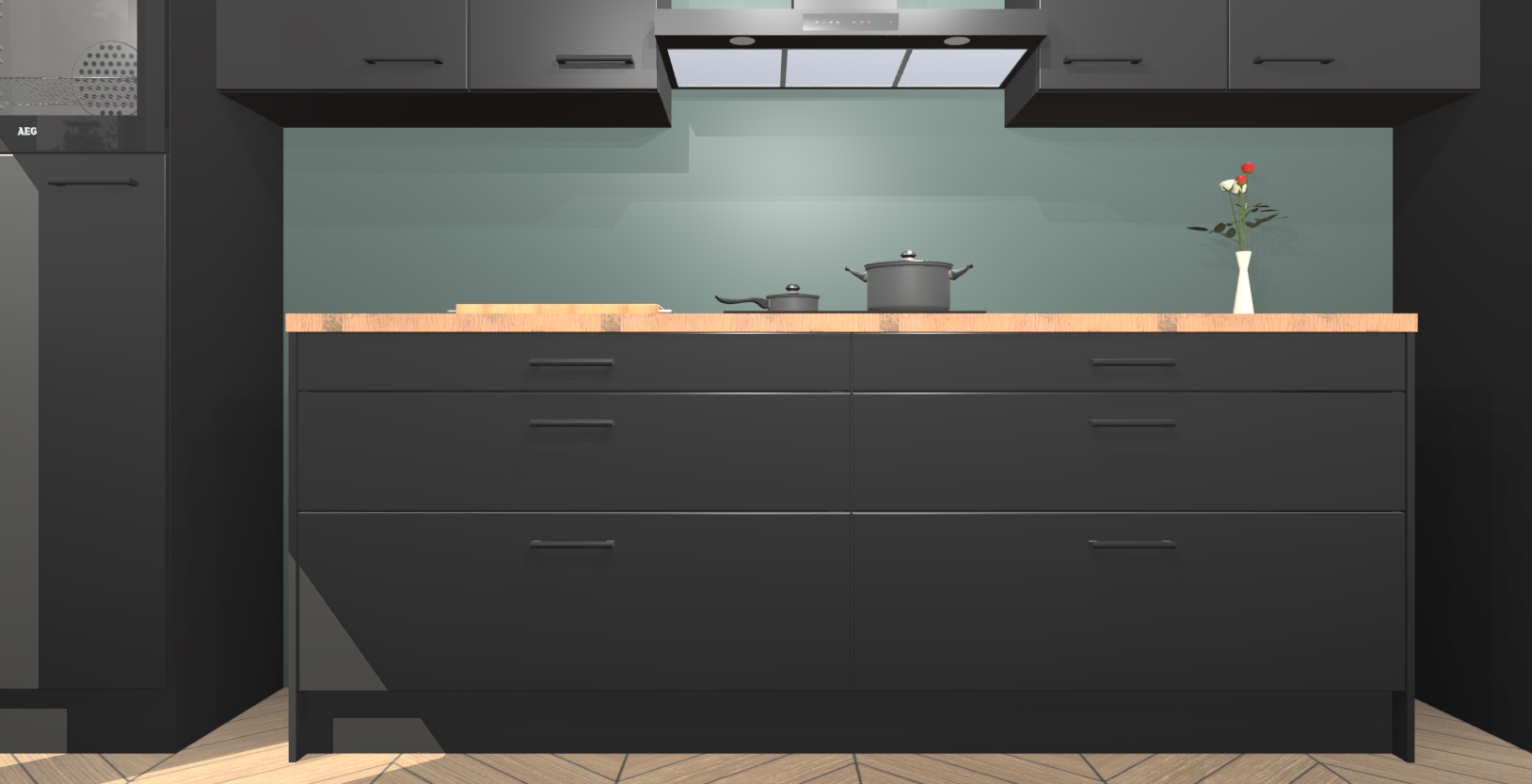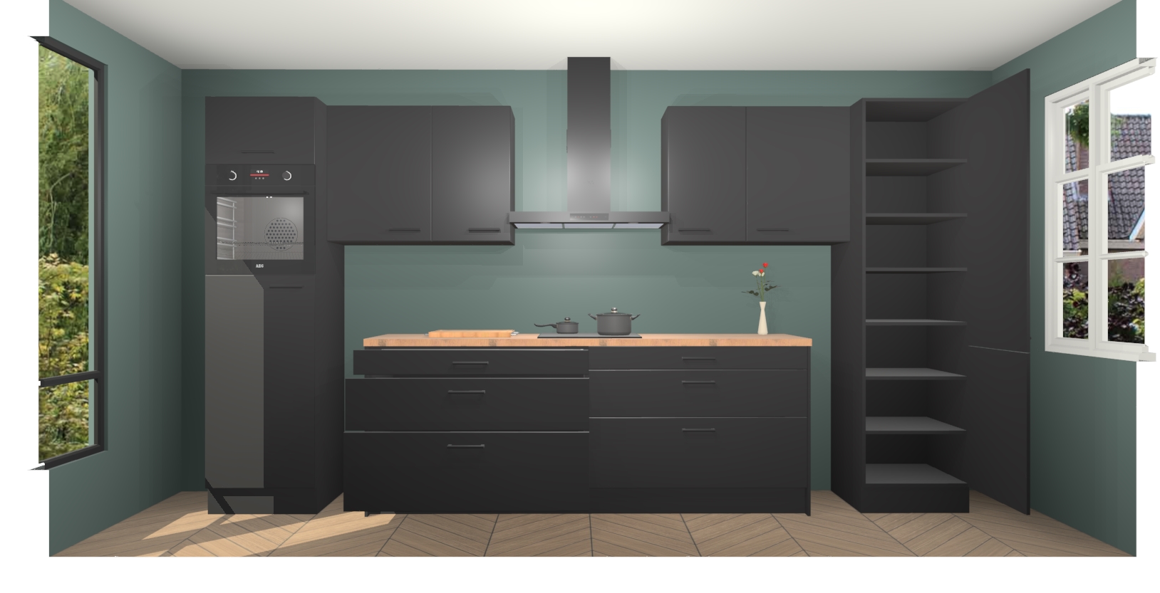 De zwarte keuken Nairobi 18926 is een adembenemende luxe keuken die uw interieur tot leven brengt. U wordt omringd door warmte en elegantie wanneer u hier kookt of heet voedsel bereidt. Onze zwarte keuken Nairobi 18926 is zelfs uitgerust met softclose-deuren, waardoor het schoonmaken van de keuken eenvoudig kinderspel wordt. Bovendien zijn er al 5 ingebouwde apparaten: een oven, inductieplaat, afzuigkap, vaatwasser en koelkast. Na bestelling kunnen deze gemakkelijk worden gewijzigd in AEG-apparatuur of van oven naar een combi magnetron.