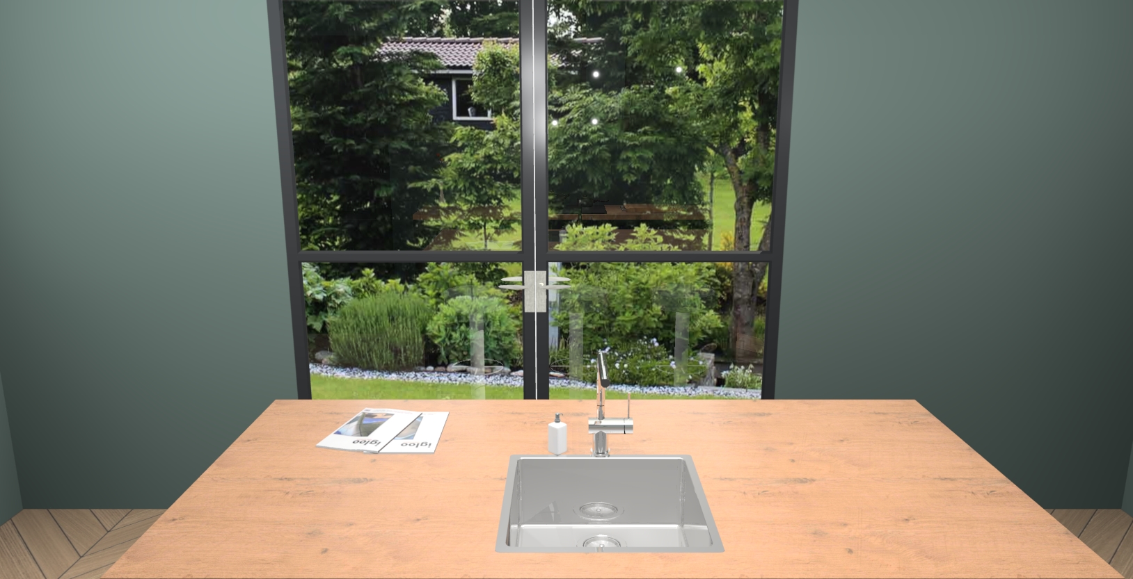 - De spoelbak is nog niet in gevreesd. Dit dient tijdens het werk gedaan te worden