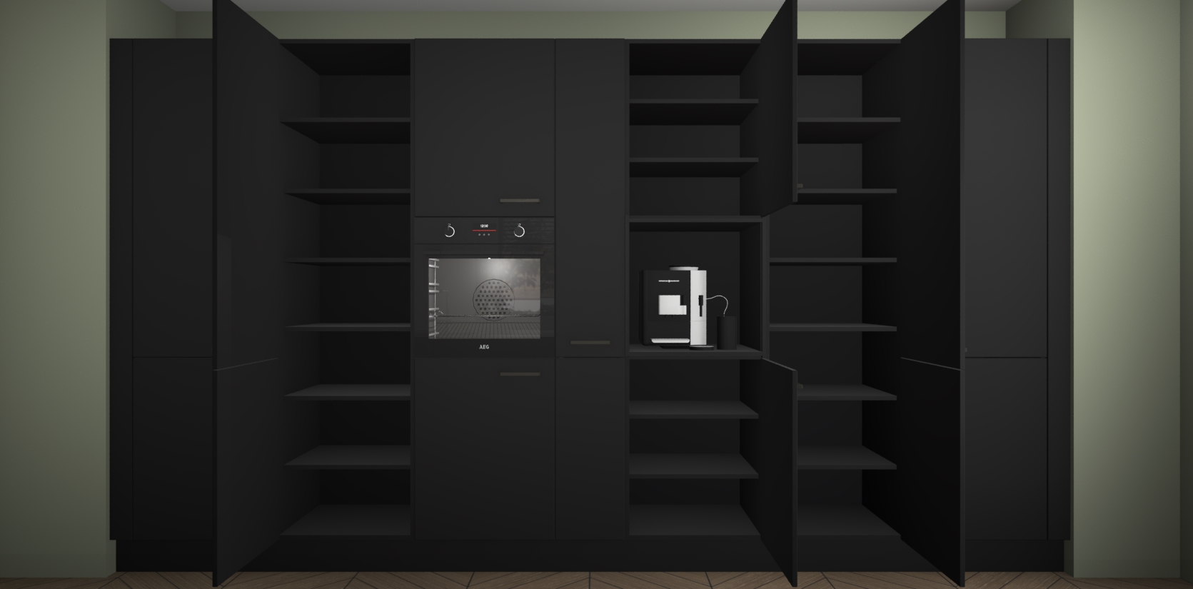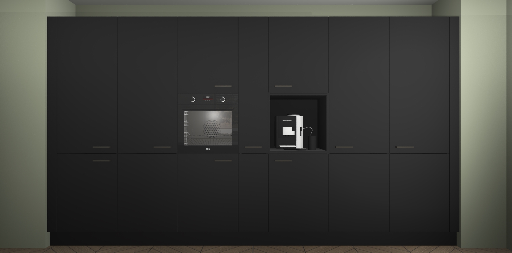 De Zwarte keuken Nantes wordt geleverd met een set van 5 ingebouwde apparaten: Een oven, inductiekookplaat, afzuigkap, vaatwasser en koelkast. Deze kunnen gemakkelijk worden opgewaardeerd naar AEG. Met de gegarandeerde lage prijs en de snelle levering van 7 weken kan u er op rekenen dat de Zwarte keuken Nantes zo snel mogelijk uw huis bereikt!