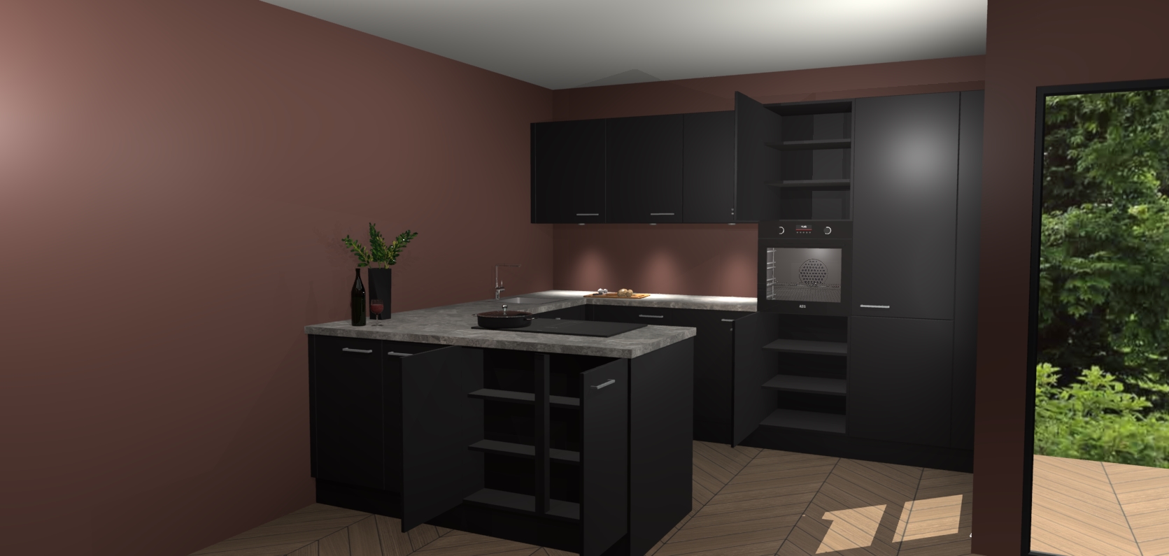 De perfecte toevoeging aan uw droomkeuken! De zwarte keuken Rosario is een opmerkelijke en verfijnde keuken. Hij is ontworpen met moderne lijnen en tijdloze schoonheid die garant staan voor een luxe uitstraling. Deze uiterst functionele en mooie keuken heeft een reeks verbazingwekkende functies: de overvloedige opbergruimte bevat soft close deuren, terwijl vijf inbouwapparaten zijn inbegrepen in de vaste lage prijs. Beter nog, uw zwarte keuken Rosario bestellen duurt slechts 7 weken met levering van voorgemonteerde kasten.