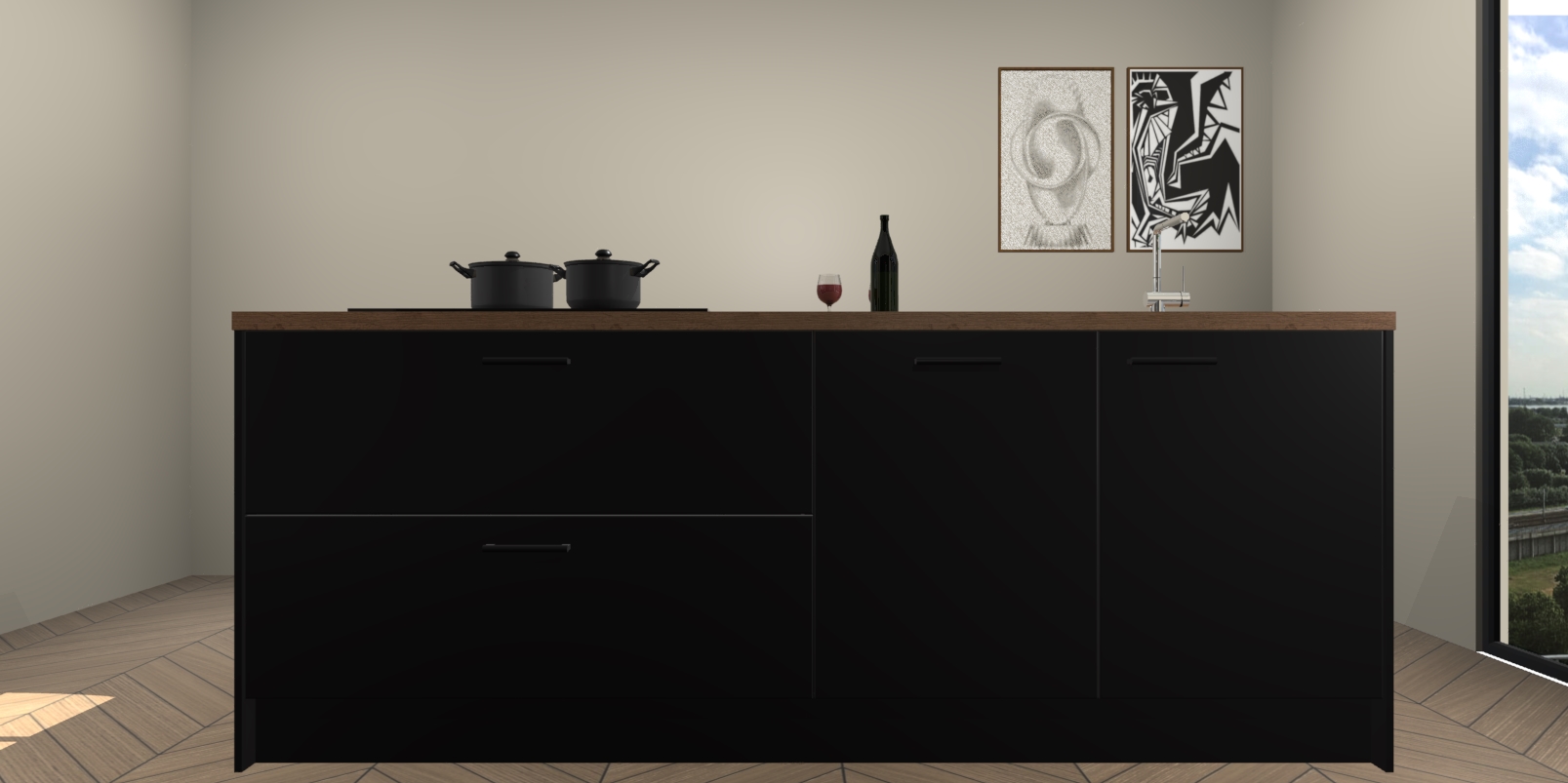 Breng luxe in uw keuken met de zwarte Rusiec Keuken! Dit prachtige kookeiland straalt elegantie uit en laat elke ruimte er modern en verfijnd uitzien. De strakke zwarte kleur geeft uw keuken een gevoel van sfeer en verfijning dat u bij andere stijlen niet krijgt.