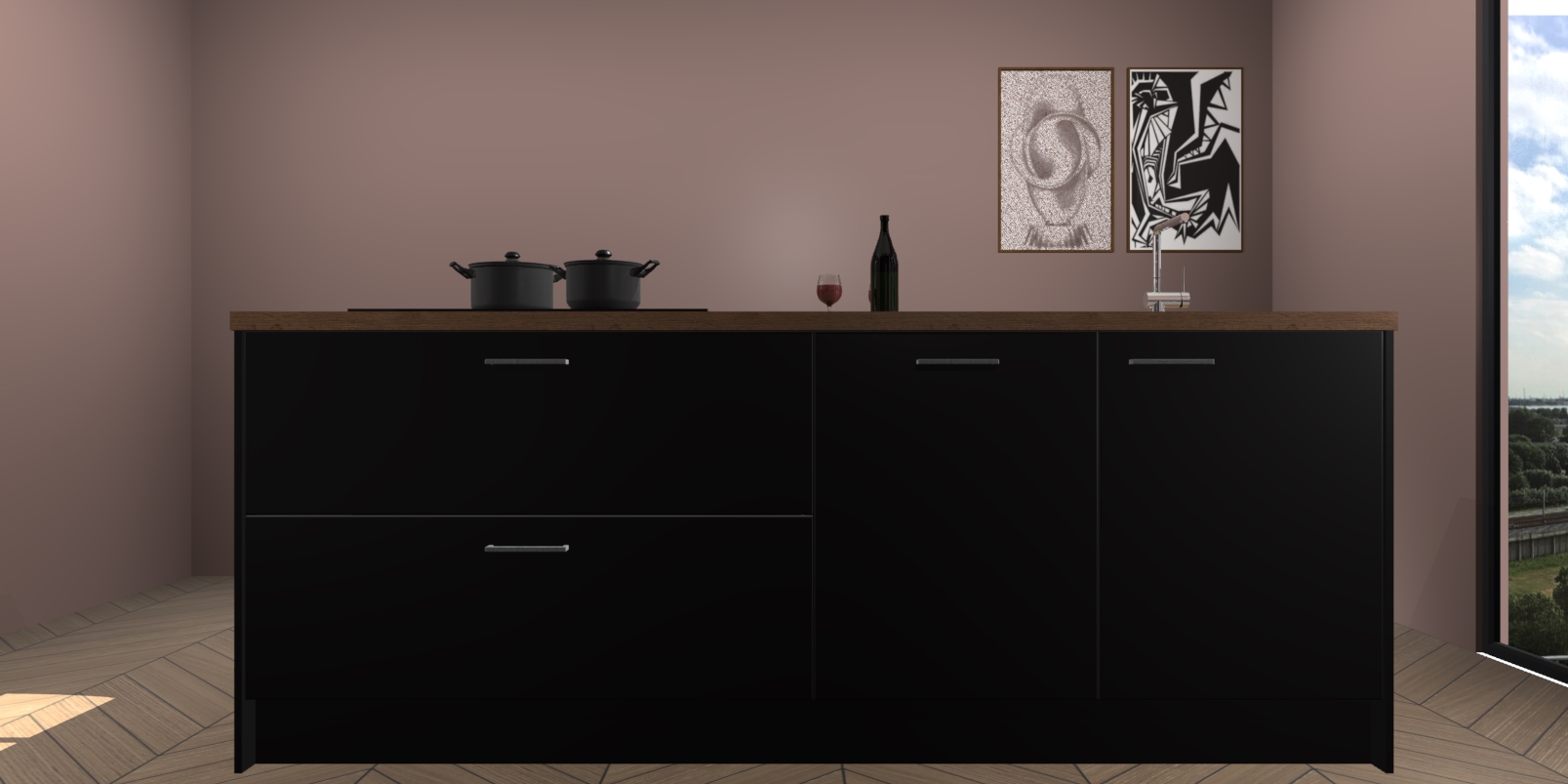 Breng luxe in uw keuken met de zwarte Rusiec Keuken! Dit prachtige kookeiland straalt elegantie uit en laat elke ruimte er modern en verfijnd uitzien. De strakke zwarte kleur geeft uw keuken een gevoel van sfeer en verfijning dat u bij andere stijlen niet krijgt.