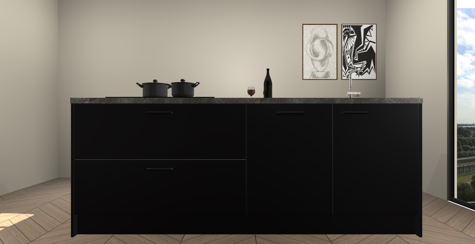 Breng luxe in uw keuken met de zwarte Rusiec Keuken! Dit prachtige kookeiland straalt elegantie uit en laat elke ruimte er modern en verfijnd uitzien. De strakke zwarte kleur geeft uw keuken een gevoel van sfeer en verfijning dat u bij andere stijlen niet krijgt.
