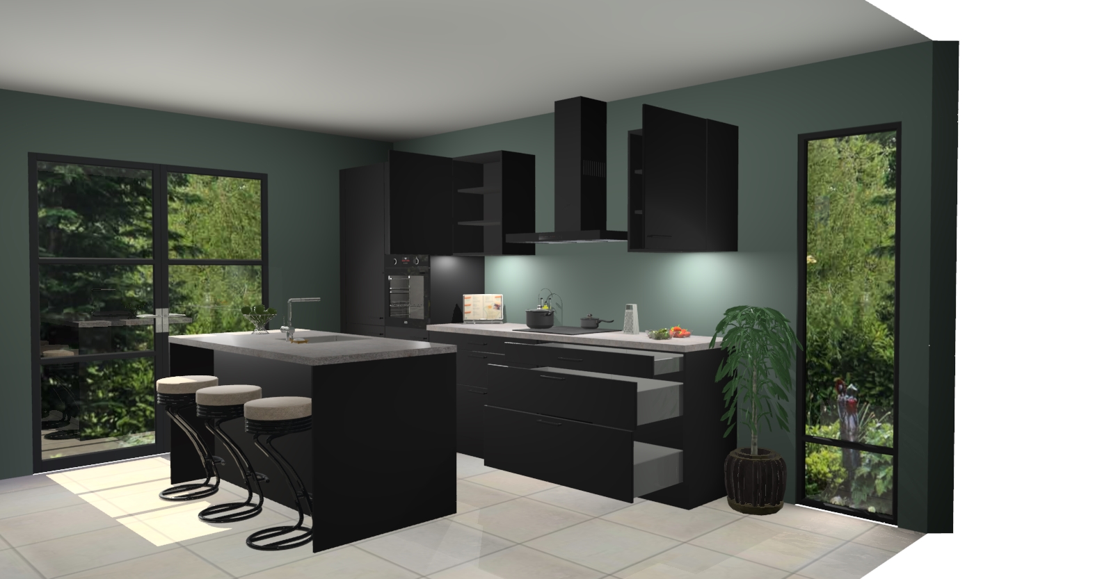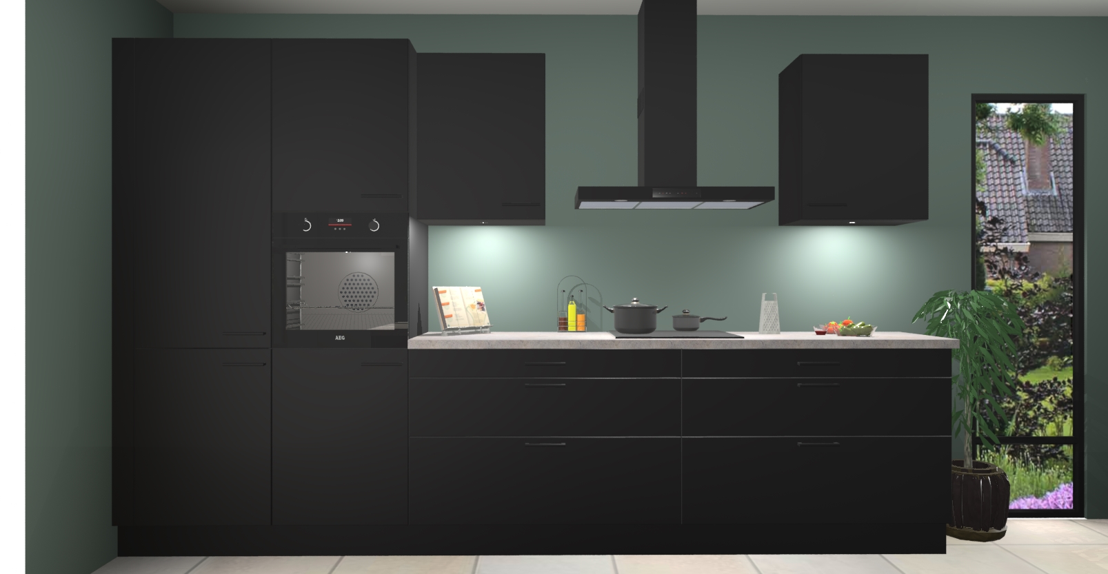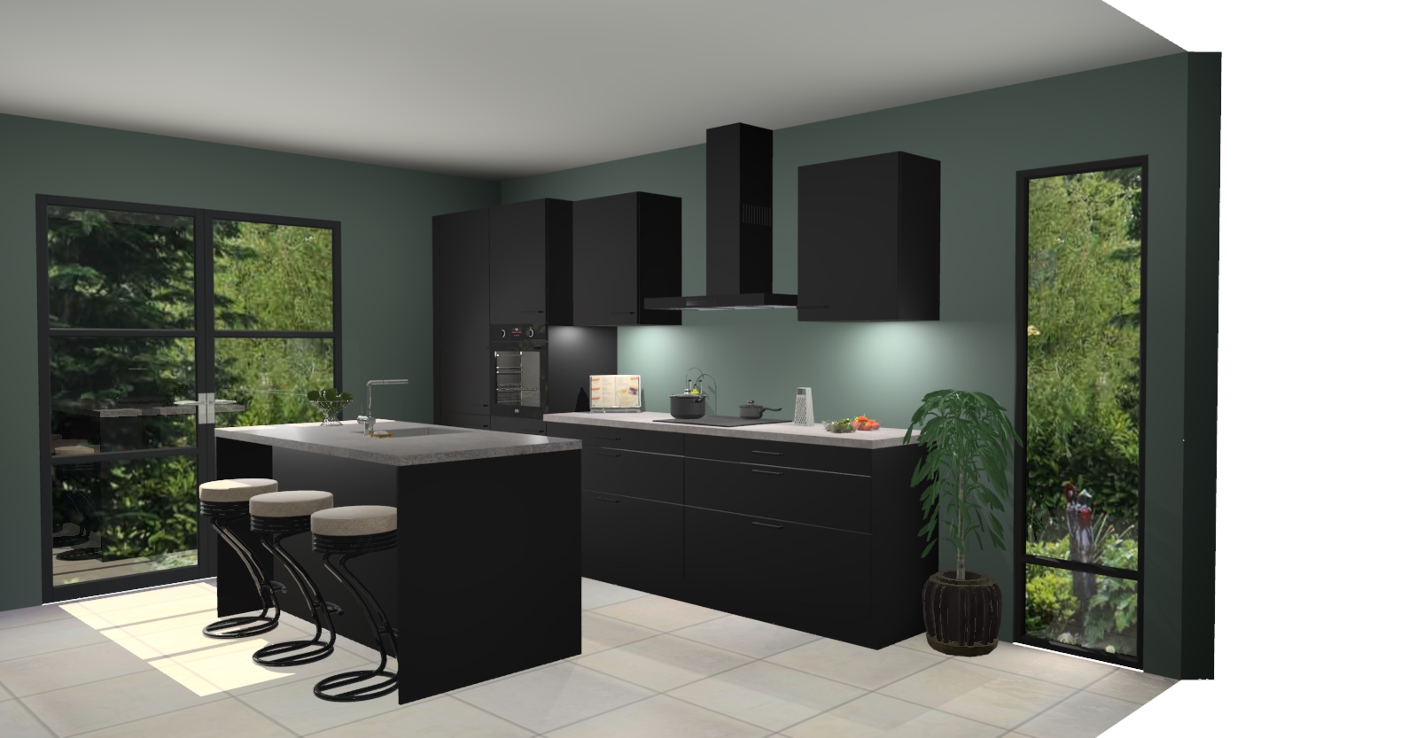 Klaar om een statement te maken in uw keuken? De Zwarte keuken Spanje is precies wat u nodig heeft. Dit moderne keuken ontwerp is de perfecte balans tussen esthetiek en functionaliteit in uw huis. Met een sfeervolle afwerking en voldoende opbergruimte kan u er zeker van zijn dat u heerlijke maaltijden bereidt en ze in uw keuken kan bewaren voor de dagen dat u het te druk hebt. Bovendien voegt het mooie spoeleiland een element van klasse en gemak toe aan uw keuken.