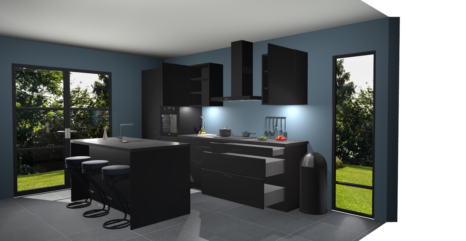 Klaar om een statement te maken in uw keuken? De Zwarte keuken Spanje is precies wat u nodig heeft. Dit moderne keuken ontwerp is de perfecte balans tussen esthetiek en functionaliteit in uw huis. Met een sfeervolle afwerking en voldoende opbergruimte kan u er zeker van zijn dat u heerlijke maaltijden bereidt en ze in uw keuken kan bewaren voor de dagen dat u het te druk hebt. Bovendien voegt het mooie spoeleiland een element van klasse en gemak toe aan uw keuken.