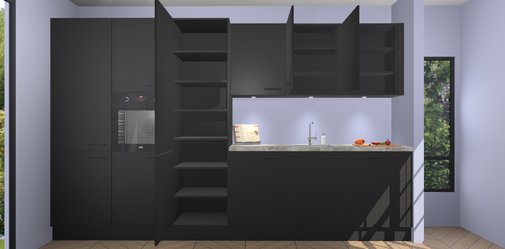 Maak kennis met de nieuwe Zwarte keuken Straatsburg, dat gemaakt is voor de moderne huiseigenaar. Deze chique en eigentijdse keuken geeft uw huis een instant upgrade. Het Zwarte ontwerp creëert de perfecte balans tussen elegantie en functionaliteit en geeft uw ruimte een strakke, uitnodigende sfeer. Het spoeleiland geeft ruime opbergruimte en met de soft-close deuren is deze keuken perfect voor elk huis.