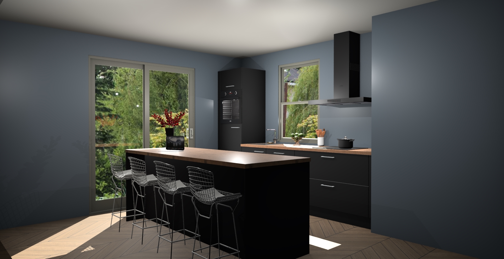 Een stijlvolle en praktische keuken als deze mag gezien worden. Dankzij de prachtige Zwarte afwerking wordt de keuken gemakkelijk het middelpunt van uw huis - hij ziet er geweldig uit onder allerlei lichtomstandigheden, van dag tot nacht!