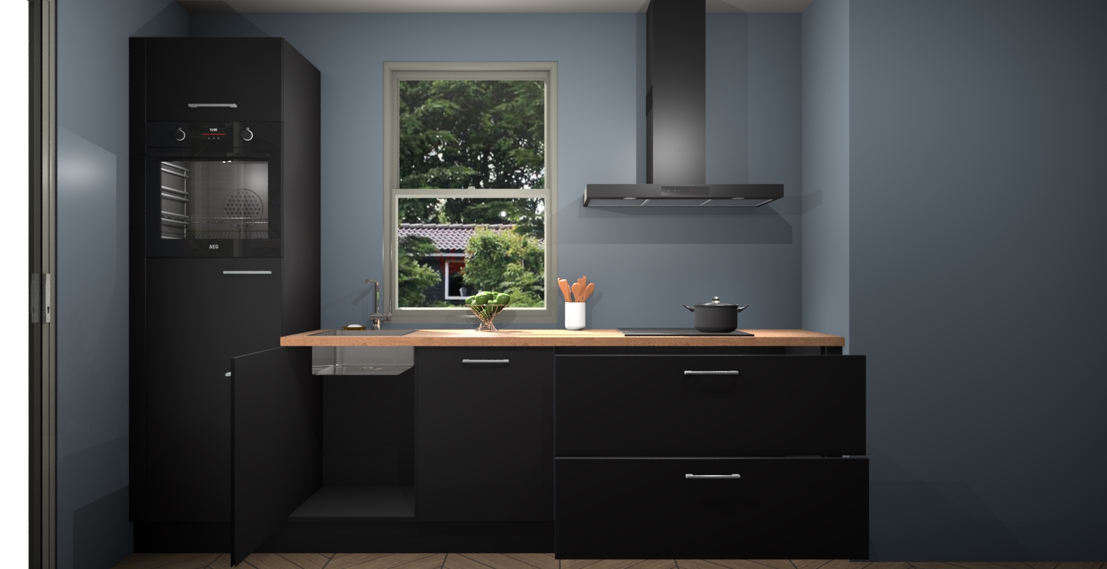 Dankzij de afwerking past de Zwarte keuken Toulouse naadloos in elk huis of appartement. De soft-close deuren geven je extra gemoedsrust, want ze sluiten vanzelf en slaan nooit dicht! En alsof dat nog niet genoeg is, worden deze kasten volledig gemonteerd geleverd, dus maak je geen zorgen over eventuele installatieproblemen.