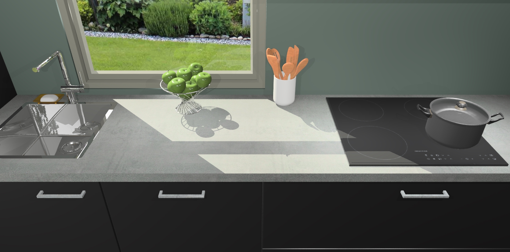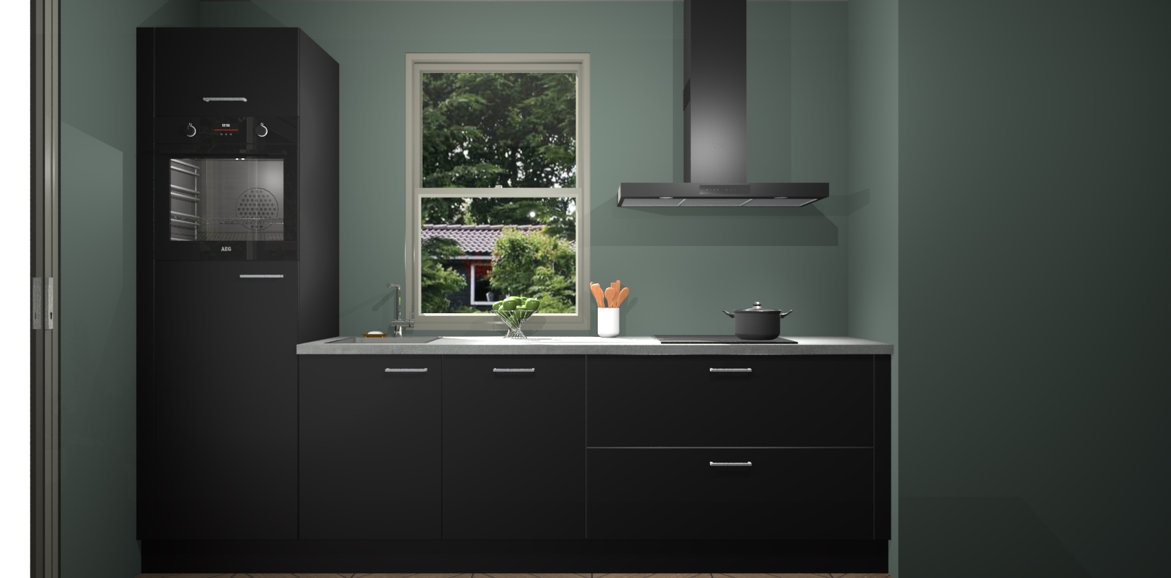Een stijlvolle en praktische keuken als deze mag gezien worden. Dankzij de prachtige Zwarte afwerking wordt de keuken gemakkelijk het middelpunt van uw huis - hij ziet er geweldig uit onder allerlei lichtomstandigheden, van dag tot nacht!