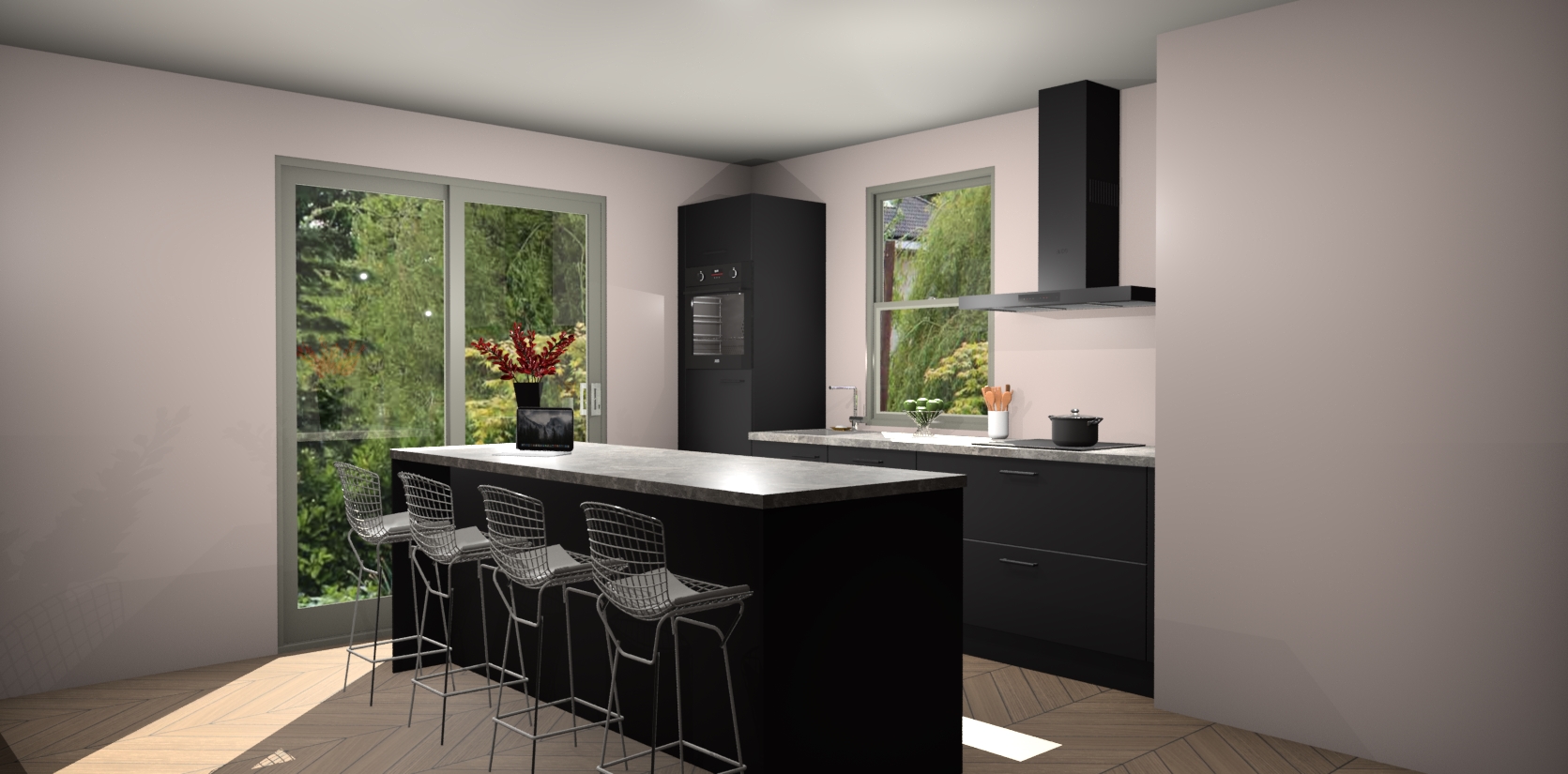 Een stijlvolle en praktische keuken als deze mag gezien worden. Dankzij de prachtige Zwarte afwerking wordt de keuken gemakkelijk het middelpunt van uw huis - hij ziet er geweldig uit onder allerlei lichtomstandigheden, van dag tot nacht!