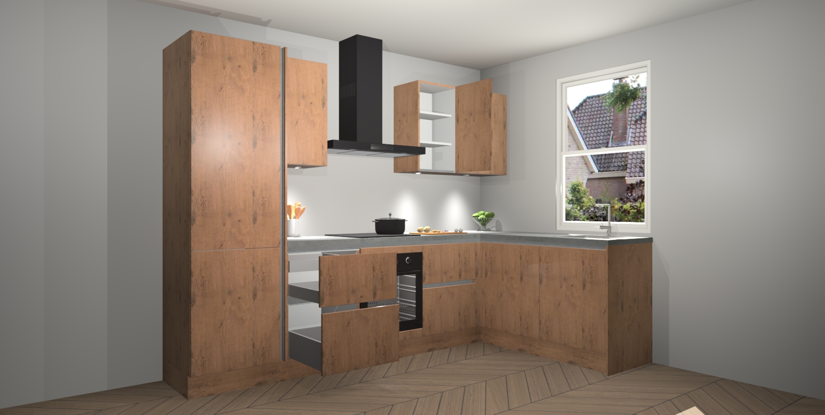 In deze box zijn alle kleuren verzameld van de deuren en werkbladen. Vraag de gratis kleurenbox aan en kijk thuis rustig verder!