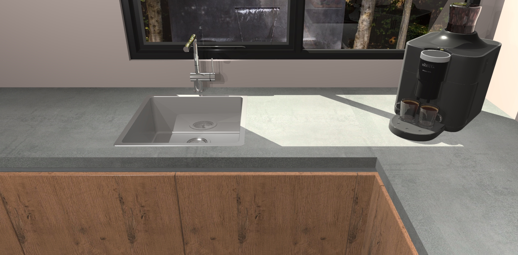 - De spoelbak is nog niet in gevreesd. Dit dient tijdens het werk gedaan te worden