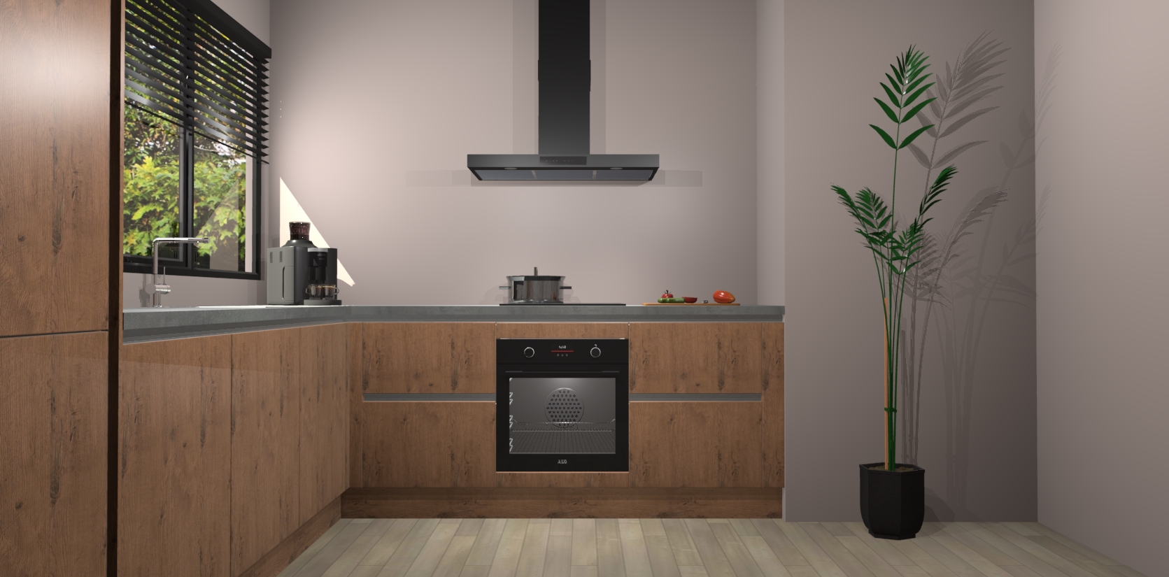 Met een modern, tijdloos design en ruime opslagruimte, zult u zich in no-time thuis voelen in uw nieuwe keuken. Uw leven wordt eenvoudiger met de soft-close deuren die voor het ultieme stille comfort zorgen - geen geluid dat u stoort terwijl u kookt. Ook is de keuken voorzien van 5 ingebouwde apparaten: een oven, inductie kookplaat, afzuigkap, vaatwasser en koelkast. Deze kunnen gemakkelijk na bestelling worden bijgewerkt naar AEG - waardoor uw luxe ervaring compleet is.