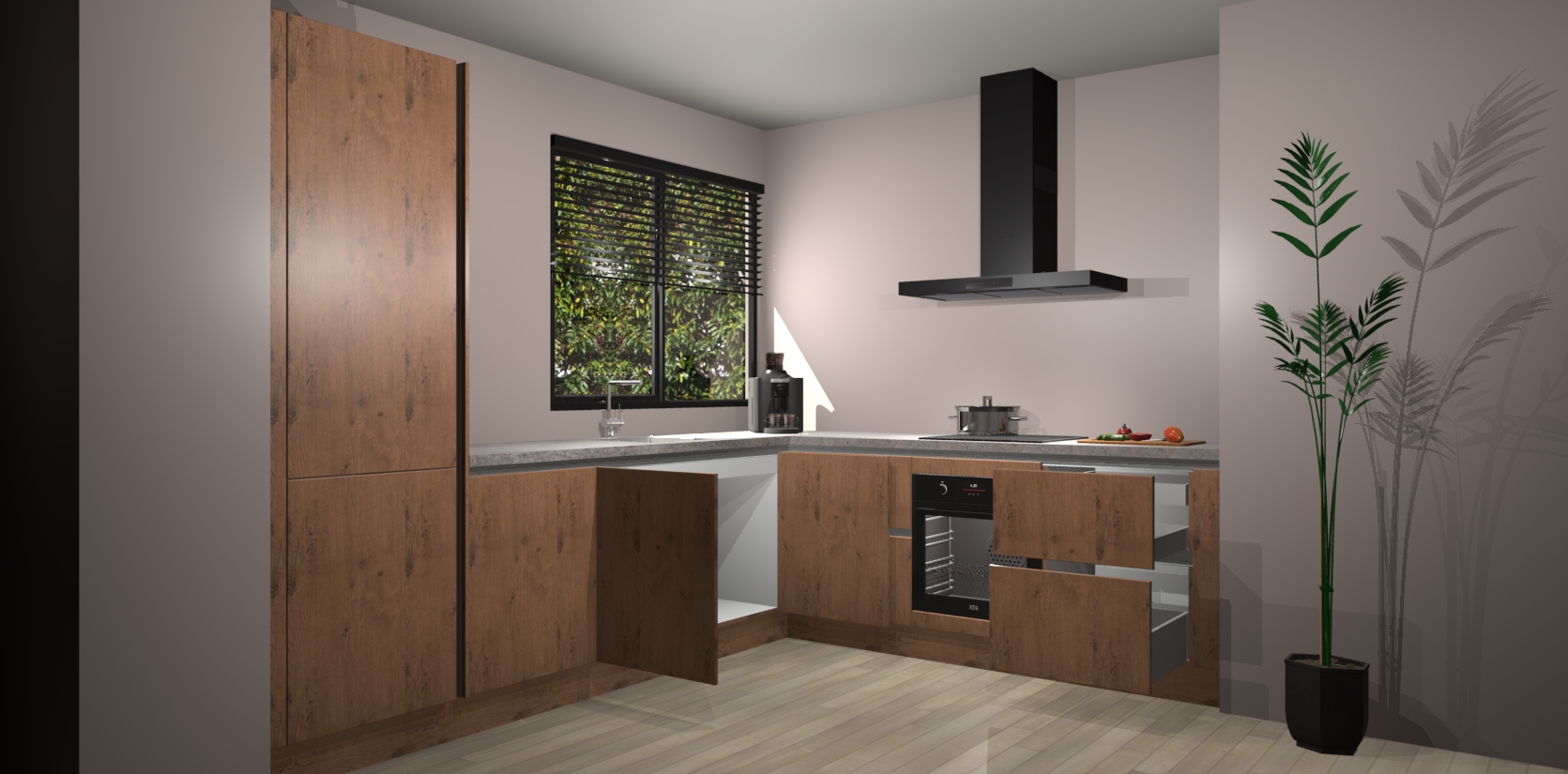 Met een modern, tijdloos design en ruime opslagruimte, zult u zich in no-time thuis voelen in uw nieuwe keuken. Uw leven wordt eenvoudiger met de soft-close deuren die voor het ultieme stille comfort zorgen - geen geluid dat u stoort terwijl u kookt. Ook is de keuken voorzien van 5 ingebouwde apparaten: een oven, inductie kookplaat, afzuigkap, vaatwasser en koelkast. Deze kunnen gemakkelijk na bestelling worden bijgewerkt naar AEG - waardoor uw luxe ervaring compleet is.