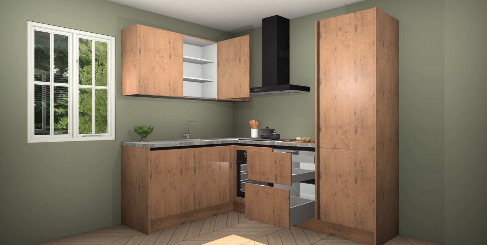 Maak kennis met de Astoria Eiken greeploze keuken Boekarest, een moderne hoekkeuken waar al uw vrienden en familie jaloers op zullen zijn! Het verbluffende mooie ontwerp past in elk interieur en is een ideale keuze voor wie op zoek is naar een klassieke, maar verfijnde look.