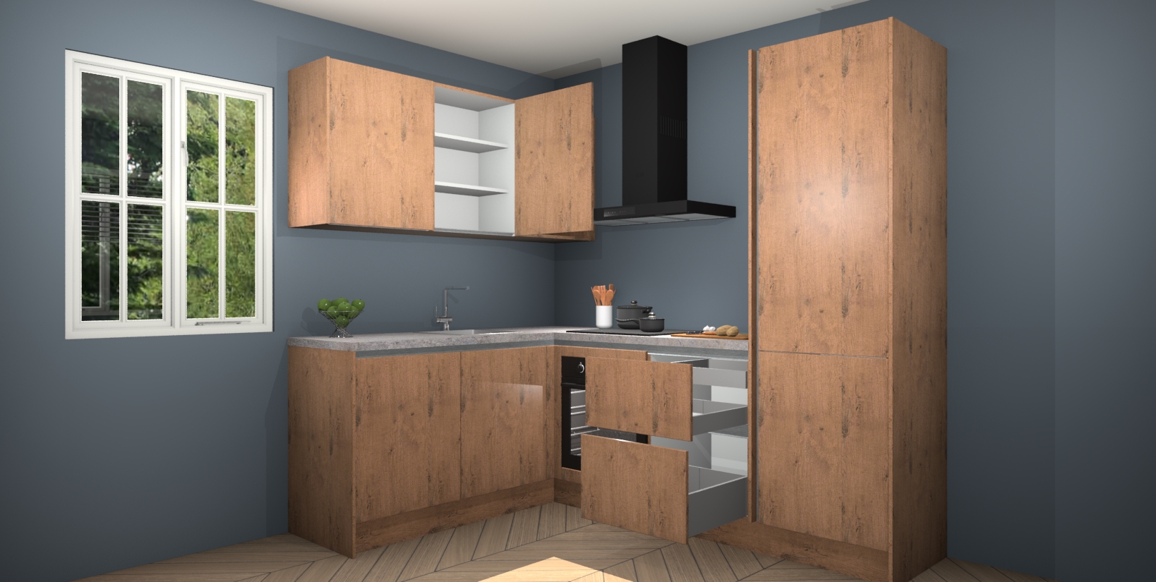 Maak kennis met de Astoria Eiken greeploze keuken Boekarest, een moderne hoekkeuken waar al uw vrienden en familie jaloers op zullen zijn! Het verbluffende mooie ontwerp past in elk interieur en is een ideale keuze voor wie op zoek is naar een klassieke, maar verfijnde look.