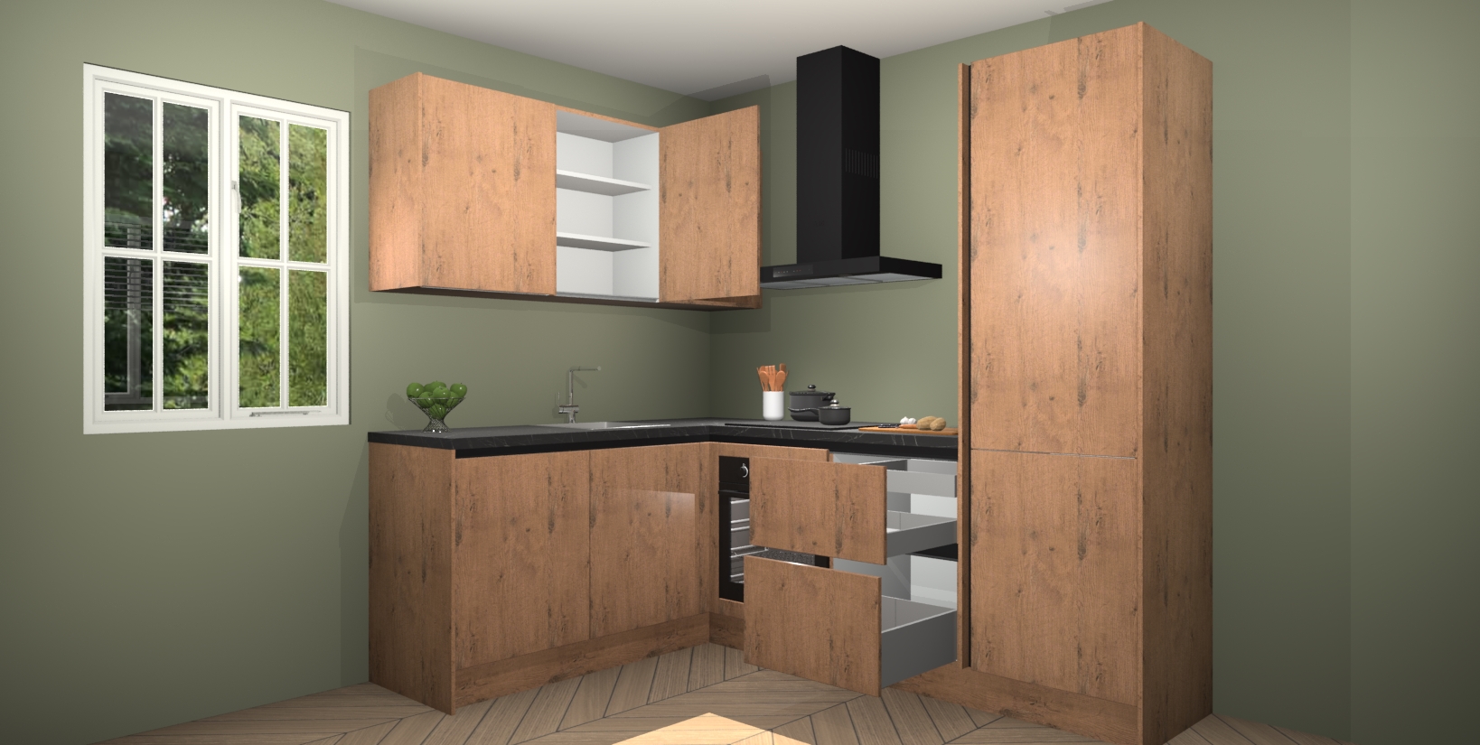 Maak kennis met de Astoria Eiken greeploze keuken Boekarest, een moderne hoekkeuken waar al uw vrienden en familie jaloers op zullen zijn! Het verbluffende mooie ontwerp past in elk interieur en is een ideale keuze voor wie op zoek is naar een klassieke, maar verfijnde look.