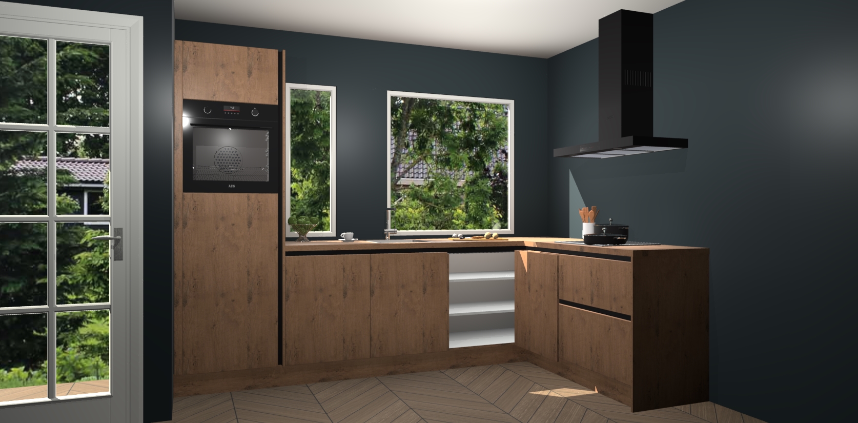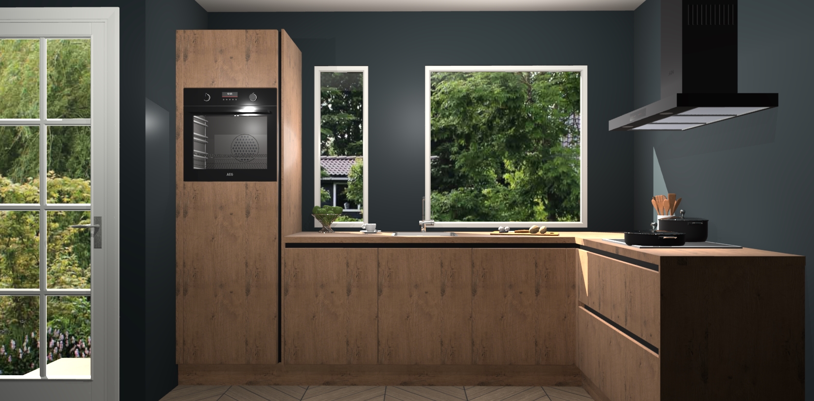Deze complete keuken wordt geleverd met 5 inbouwapparaten: een oven, inductiekookplaat, afzuigkap, vaatwasser en koelkast.  De toestellen kunnen na bestelling ook gemakkelijk worden opgewaardeerd naar AEG. Bovendien is elke deur in deze keuken voorzien van handige softclose technologie voor eenvoudig gebruik! Als een leuke toevoeging zit in deze keuken ook een carrousel, zo hoef je niet meer de hoek in duiken om iets te pakken.