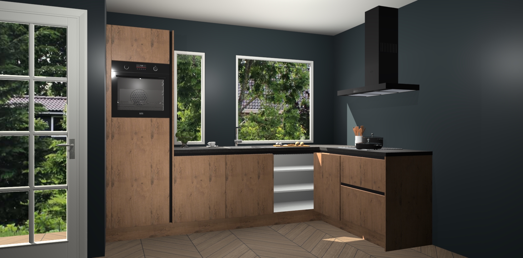 Deze complete keuken wordt geleverd met 5 inbouwapparaten: een oven, inductiekookplaat, afzuigkap, vaatwasser en koelkast. De toestellen kunnen na bestelling ook gemakkelijk worden opgewaardeerd naar AEG. Bovendien is elke deur in deze keuken voorzien van handige softclose technologie voor eenvoudig gebruik! Als een leuke toevoeging zit in deze keuken ook een carrousel, zo hoef je niet meer de hoek in duiken om iets te pakken.