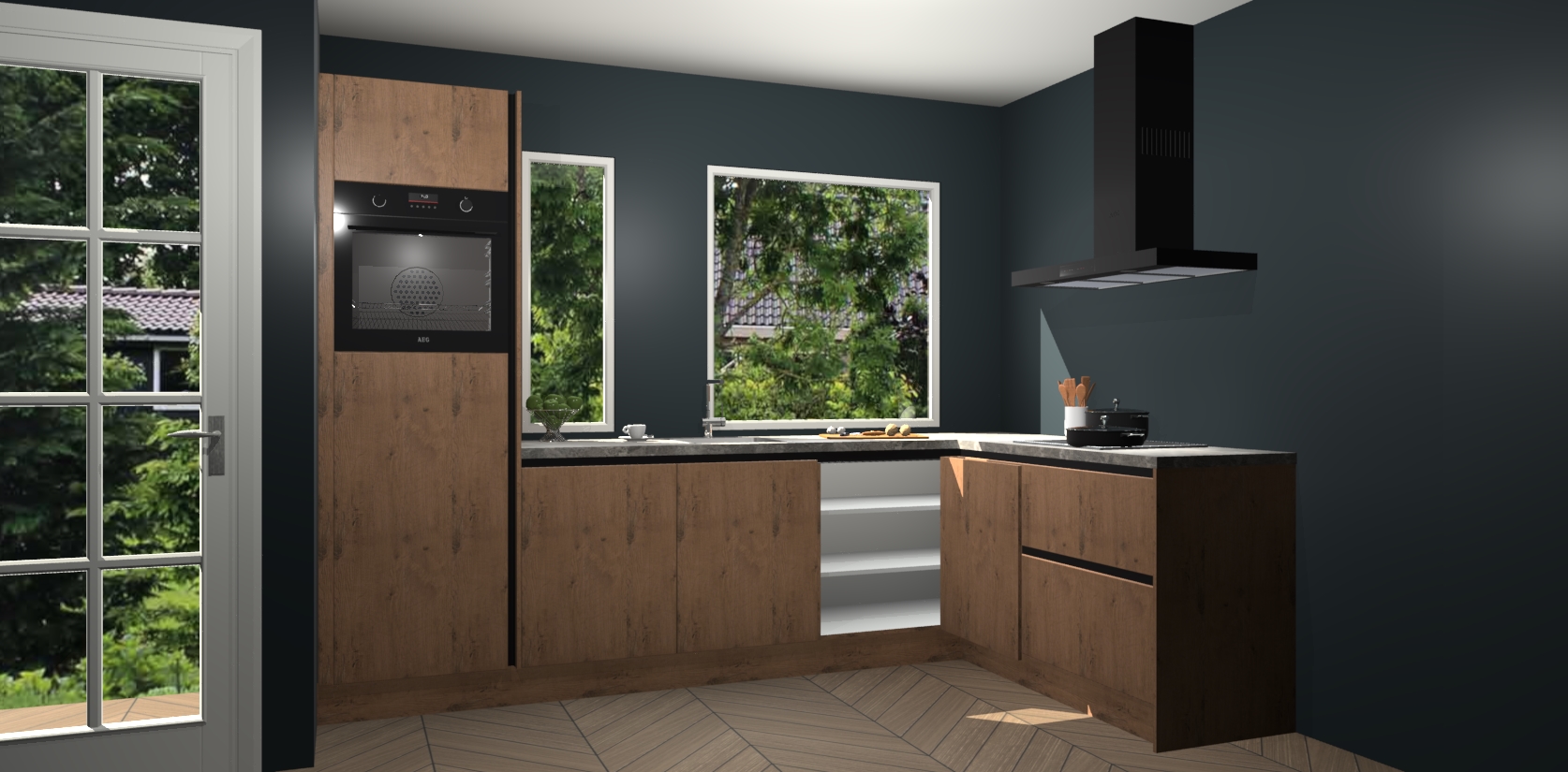 Deze complete keuken wordt geleverd met 5 inbouwapparaten: een oven, inductiekookplaat, afzuigkap, vaatwasser en koelkast.  De toestellen kunnen na bestelling ook gemakkelijk worden opgewaardeerd naar AEG. Bovendien is elke deur in deze keuken voorzien van handige softclose technologie voor eenvoudig gebruik! Als een leuke toevoeging zit in deze keuken ook een carrousel, zo hoef je niet meer de hoek in duiken om iets te pakken.