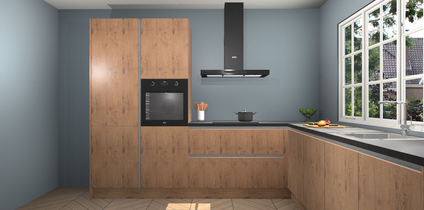De keuken heeft veel opbergruimte, waardoor u alle ingrediënten gemakkelijk bereikbaar hebt staan. En daarnaast bevat deze volledig uitgeruste keuken ook 5 ingebouwde apparaten: een oven, inductiekookplaat, afzuigkap, vaatwasser en koelkast. Deze zijn heel eenvoudig na bestellen te upgraden naar AEG als u dit wilt. Bovendien zijn de softclose-kastdeuren ideaal; geef ze gewoon even een tikje en ze sluiten automatisch met geruisloze precisie.