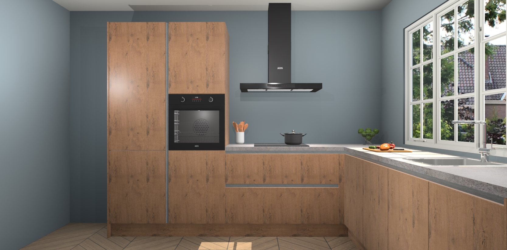 De keuken heeft veel opbergruimte, waardoor u alle ingrediënten gemakkelijk bereikbaar hebt staan. En daarnaast bevat deze volledig uitgeruste keuken ook 5 ingebouwde apparaten: een oven, inductiekookplaat, afzuigkap, vaatwasser en koelkast. Deze zijn heel eenvoudig na bestellen te upgraden naar AEG als u dit wilt. Bovendien zijn de softclose-kastdeuren ideaal; geef ze gewoon even een tikje en ze sluiten automatisch met geruisloze precisie.
