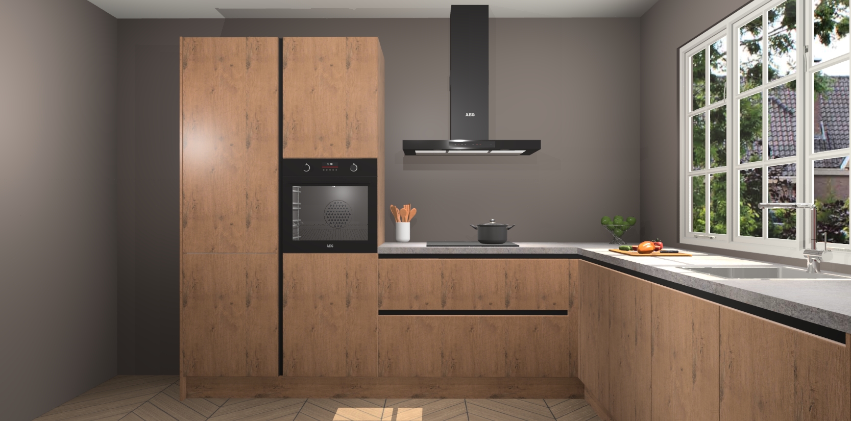 De keuken heeft veel opbergruimte, waardoor u alle ingrediënten gemakkelijk bereikbaar hebt staan. En daarnaast bevat deze volledig uitgeruste keuken ook 5 ingebouwde apparaten: een oven, inductiekookplaat, afzuigkap, vaatwasser en koelkast. Deze zijn heel eenvoudig na bestellen te upgraden naar AEG als u dit wilt. Bovendien zijn de softclose-kastdeuren ideaal; geef ze gewoon even een tikje en ze sluiten automatisch met geruisloze precisie.