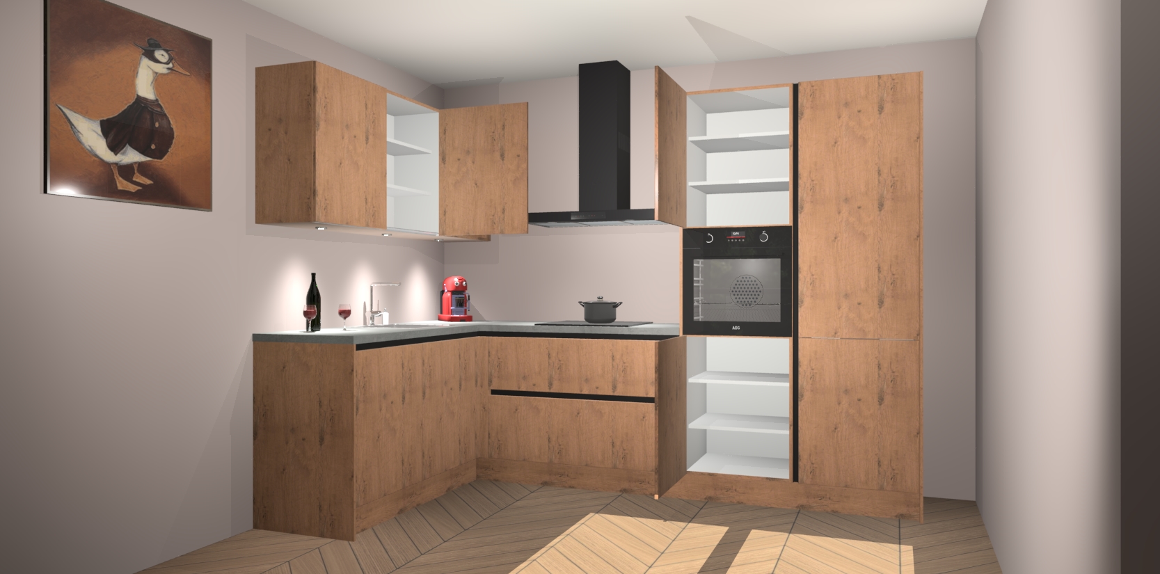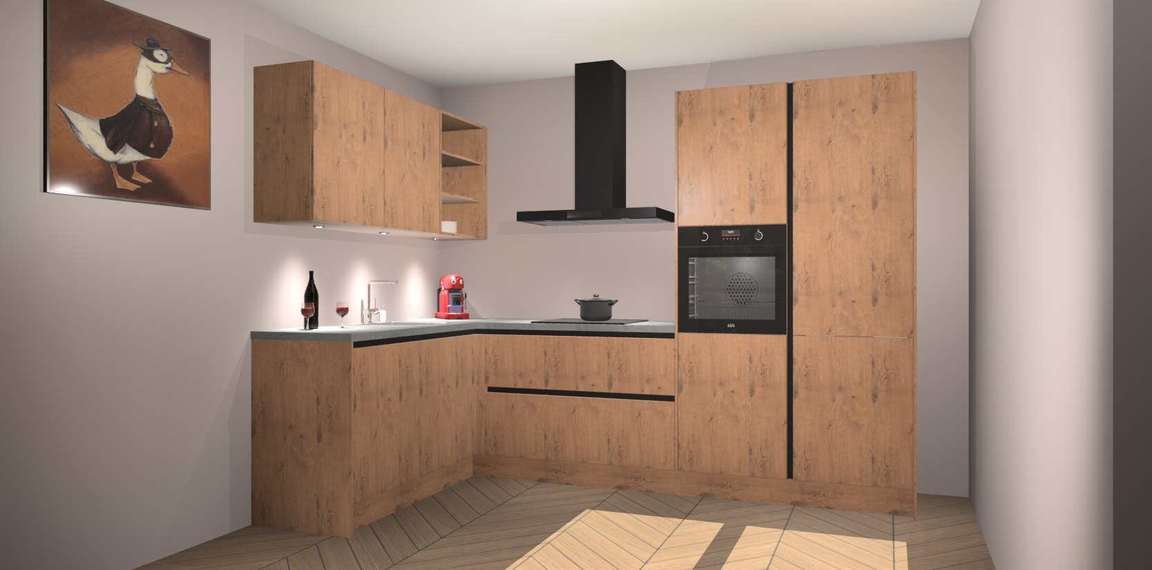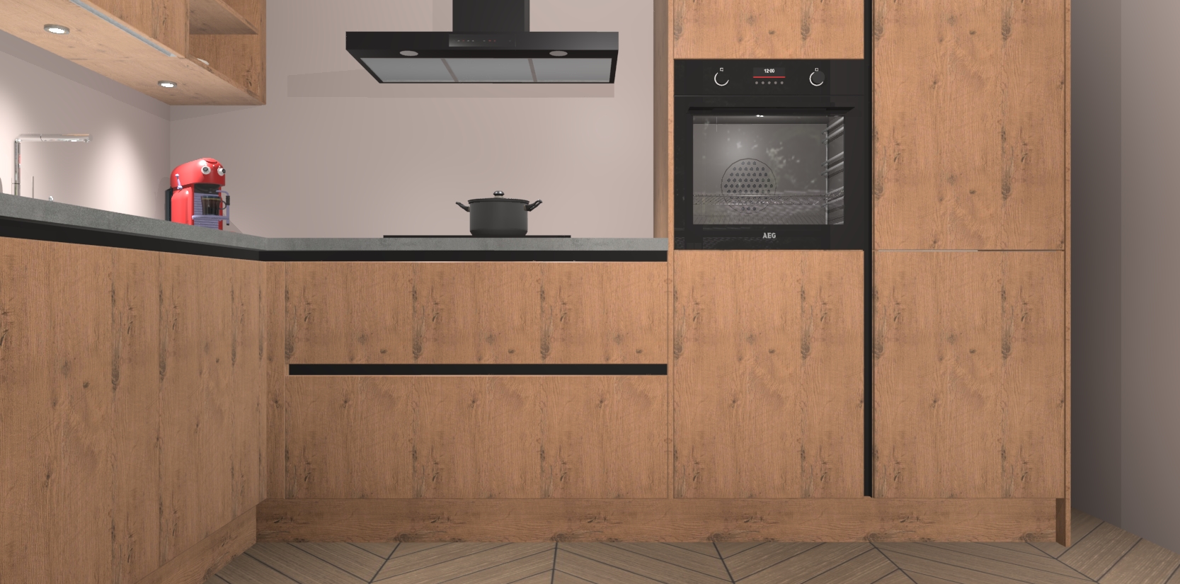 De Astoria Eiken greeploze keuken Cognac is een adembenemend ontwerp met een modern en tijdloos uiterlijk. Deze luxe keuken straalt echt aristocratisch uit, waardoor uw koken plezieriger zal worden! Het prachtige design begint bij de hoekkeuken, wat perfect past bij elk type interieur. Bovendien bevat deze hoogwaardige set vijf inbouwapparaten - van oven tot koelkast - die via bestelling naar AEG geüpgraded kunnen worden!