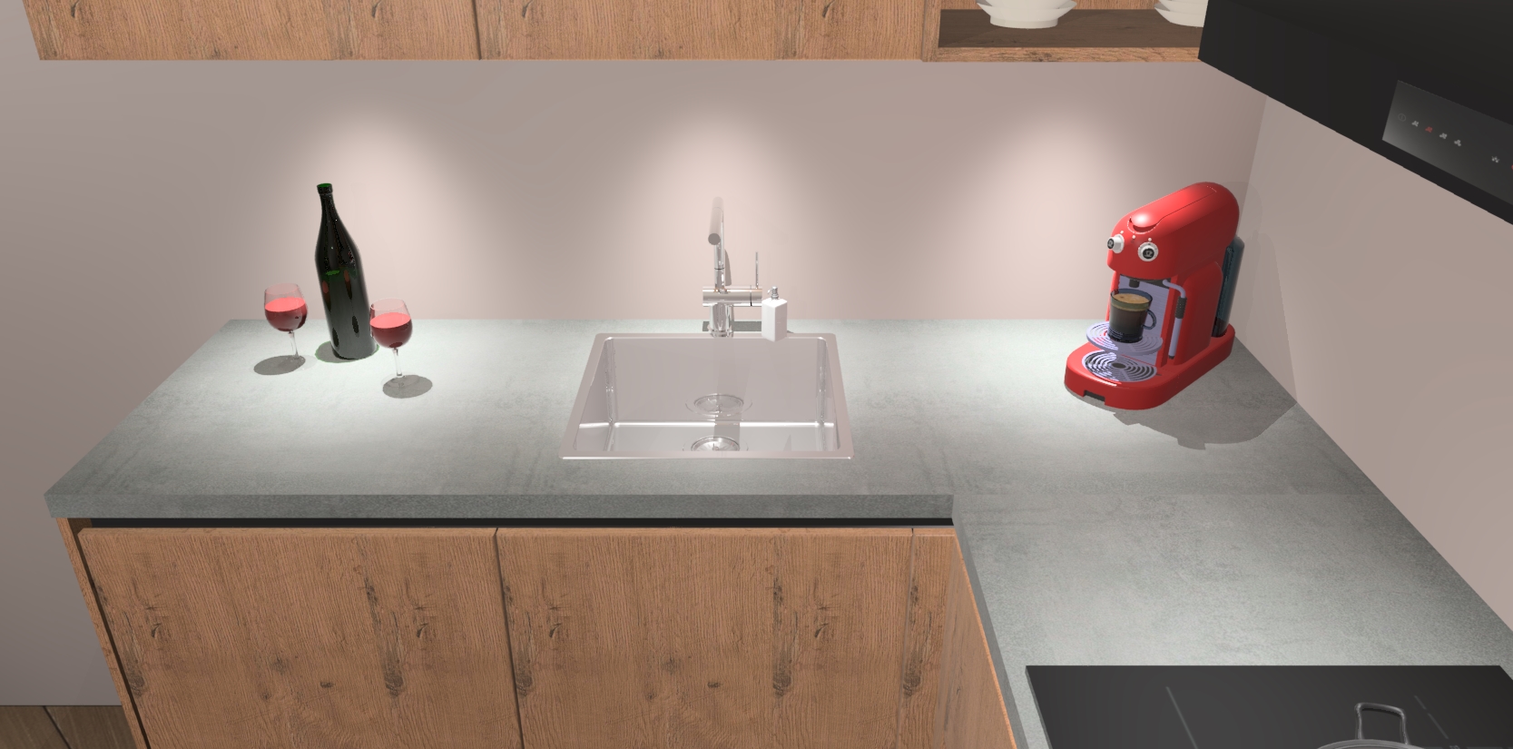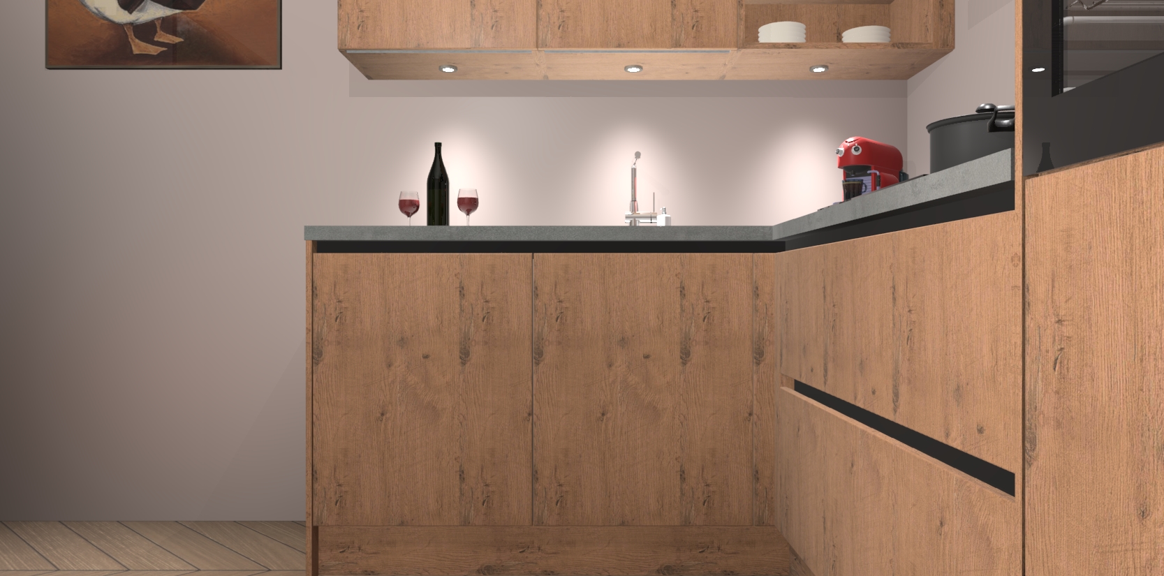 - Bij een hoekwerkblad zijn de hoeken in gevreesd en op maat gemaakt
